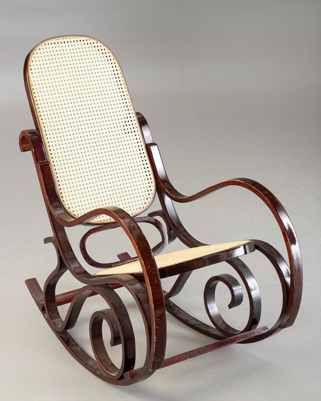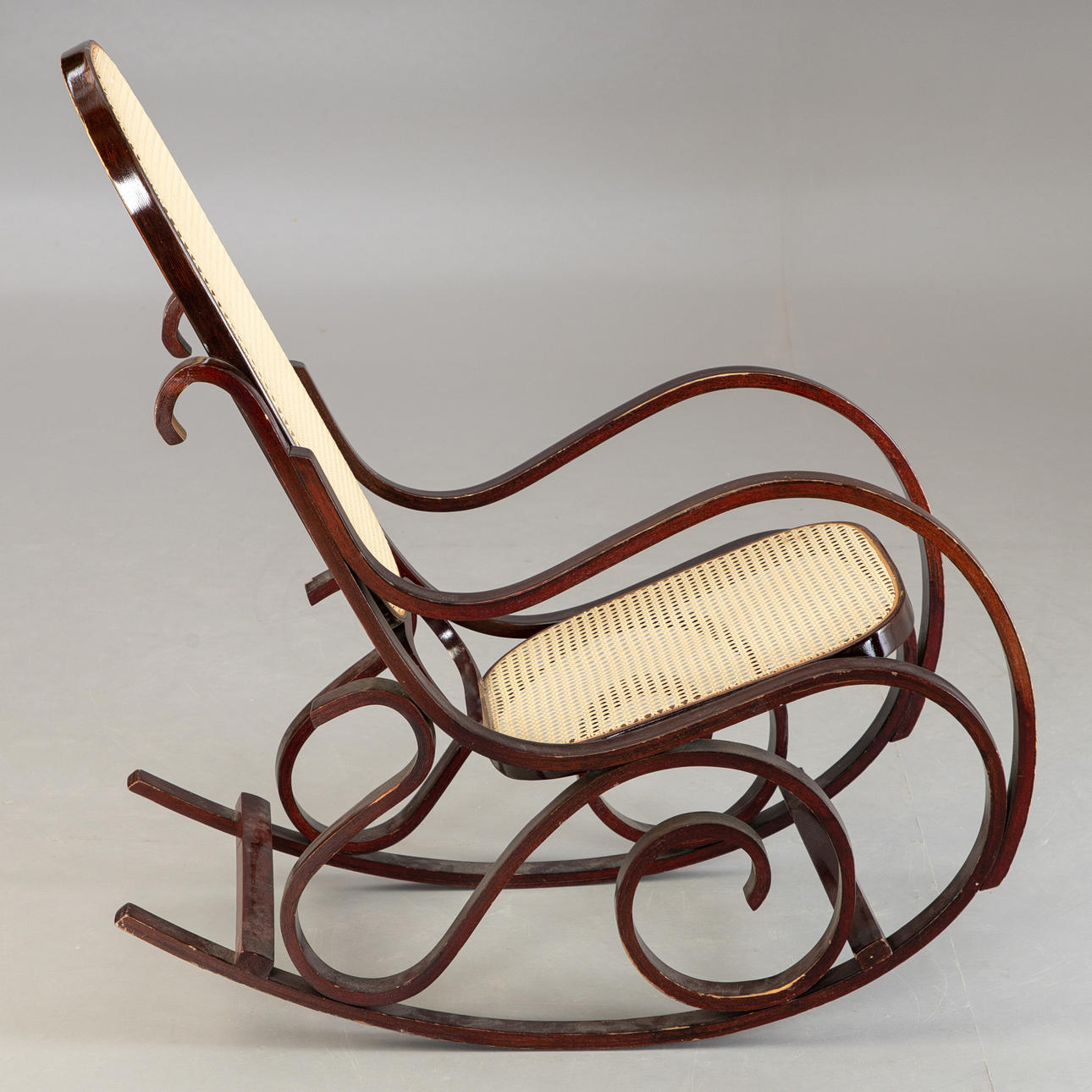 2635875. Schaukelstuhl mit Wiener Geflecht.