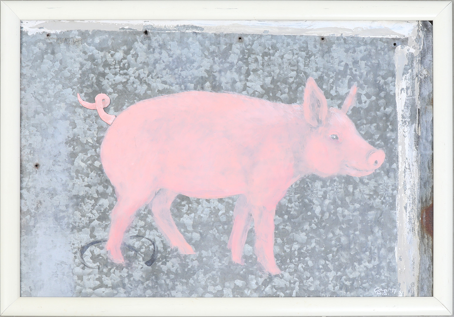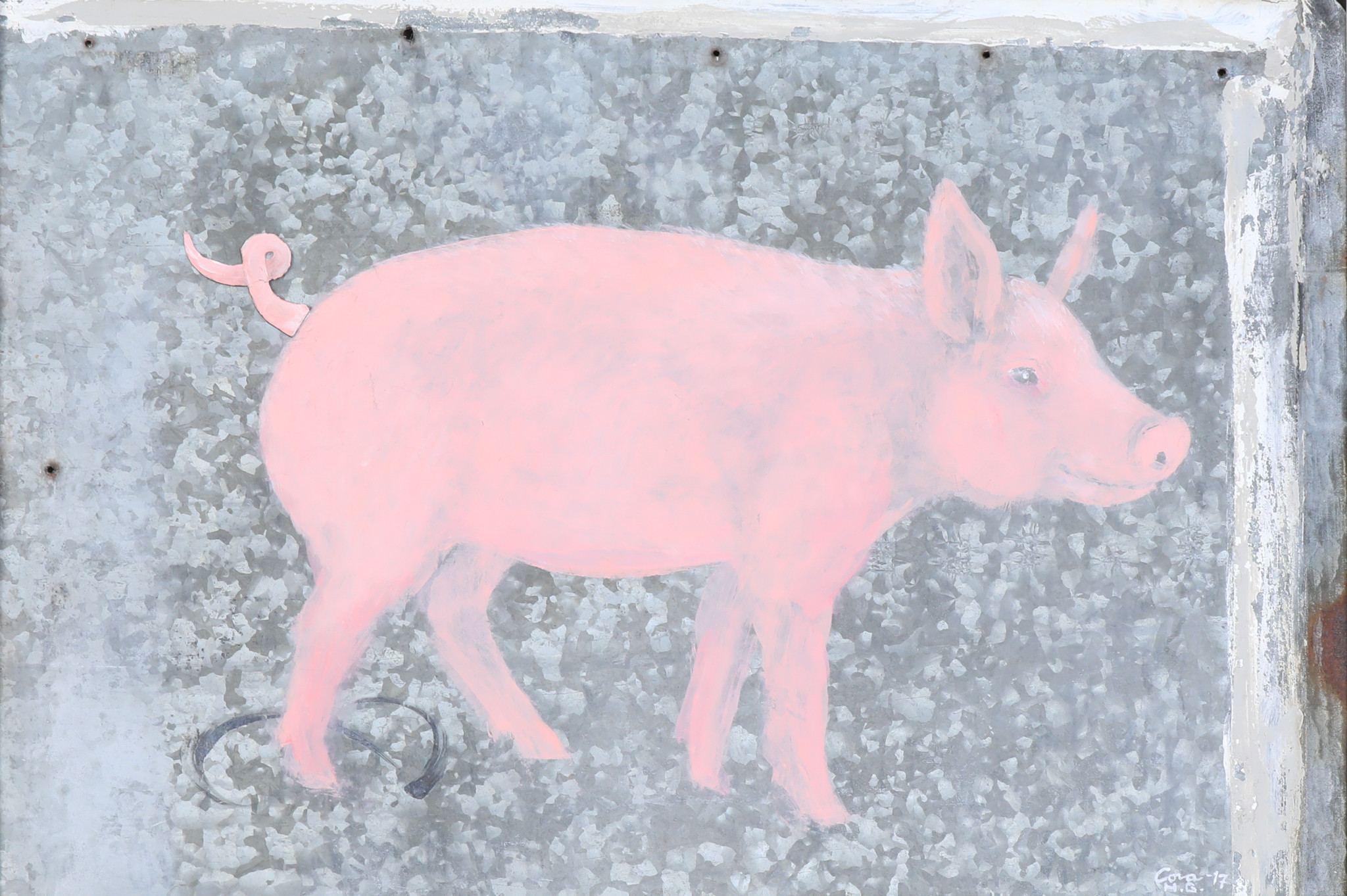 2639288. OIDENTIFIERAD KONSTNÄR. Malerei auf Platte, signiert, Schwein.