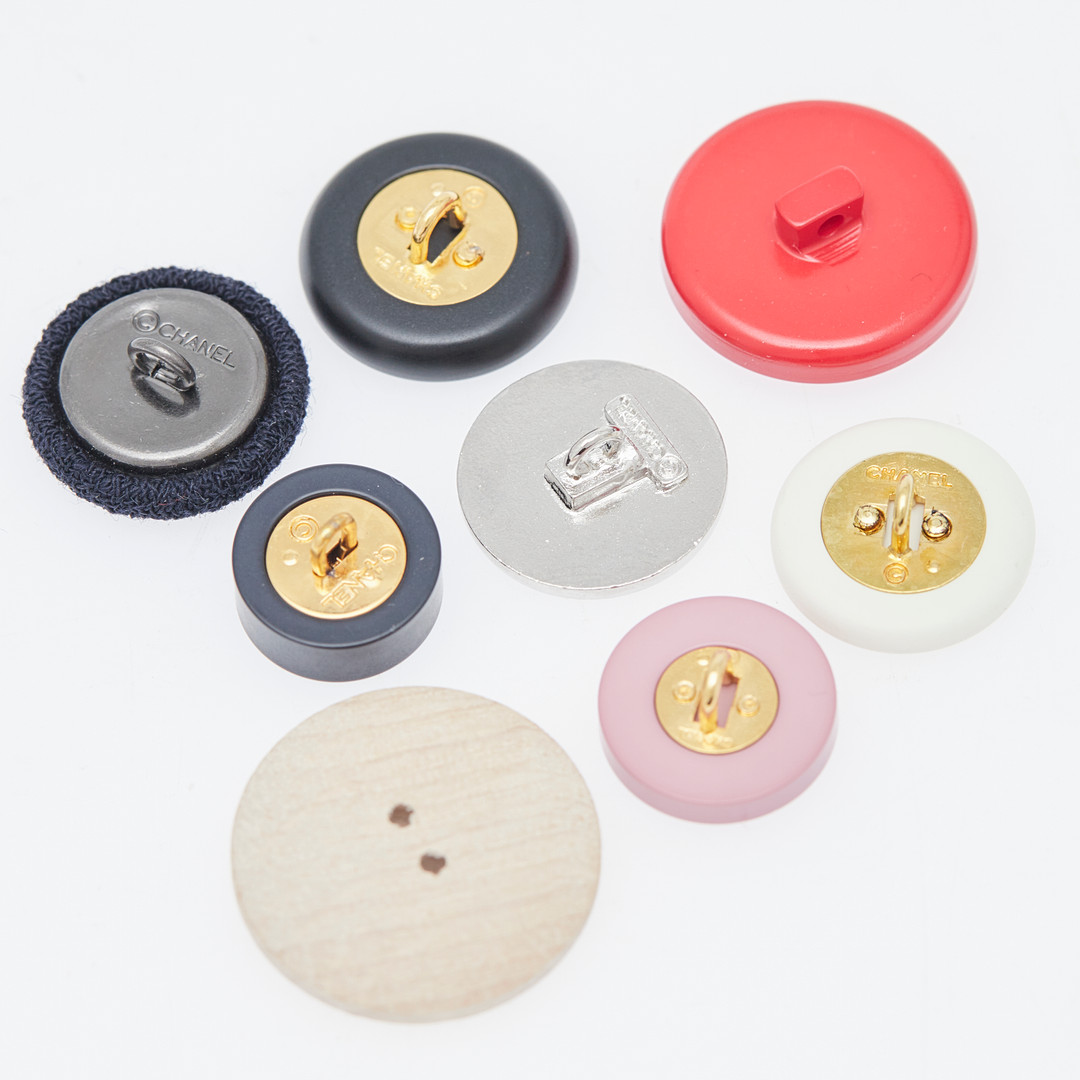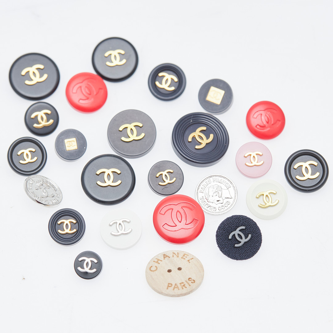 2640071. CHANEL. Set Knöpfe, Metall, Kunststoff (24).