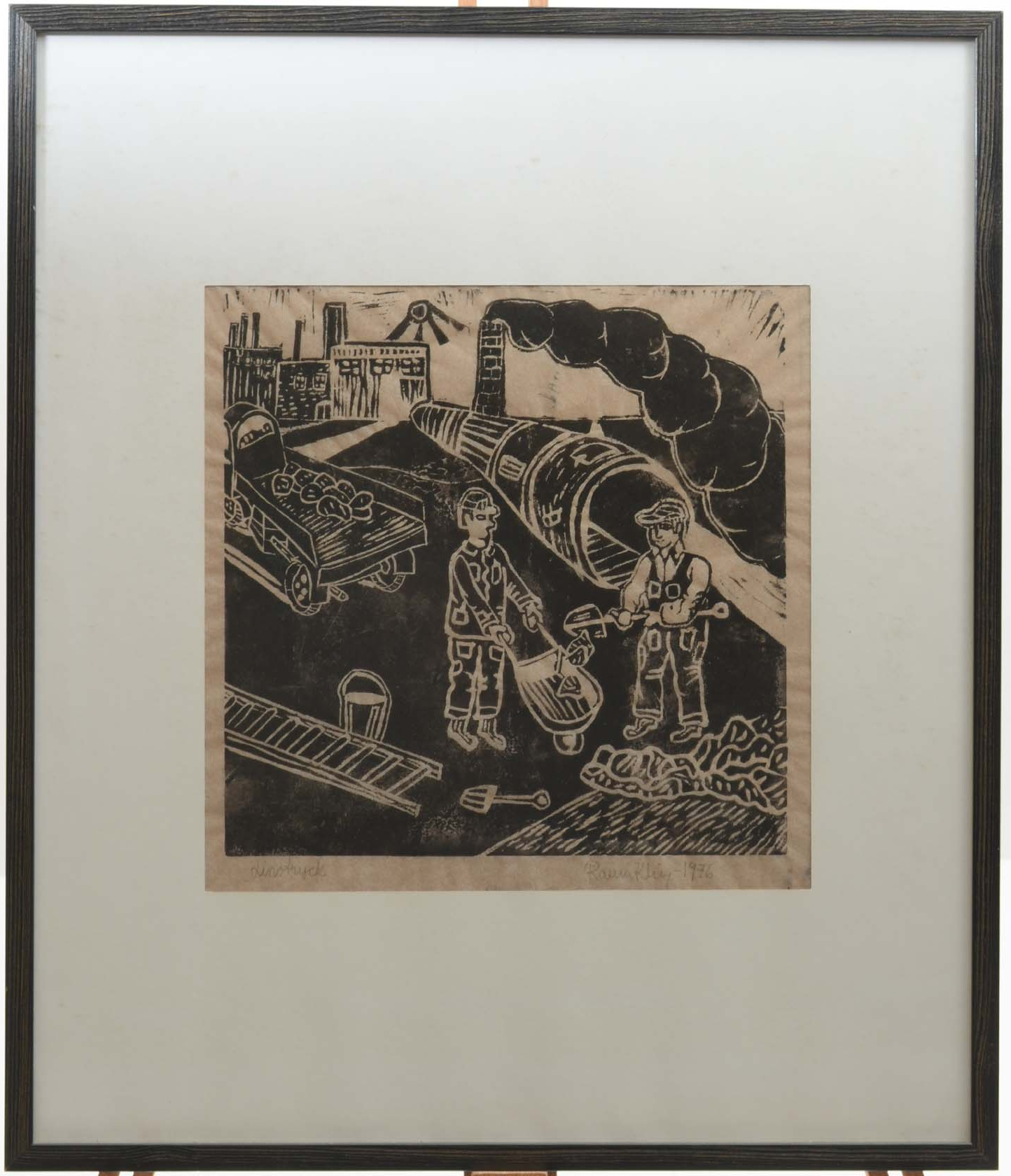 2641070. OIDENTIFIERAD KONSTNÄR. Arbeiter. Linoldruck.