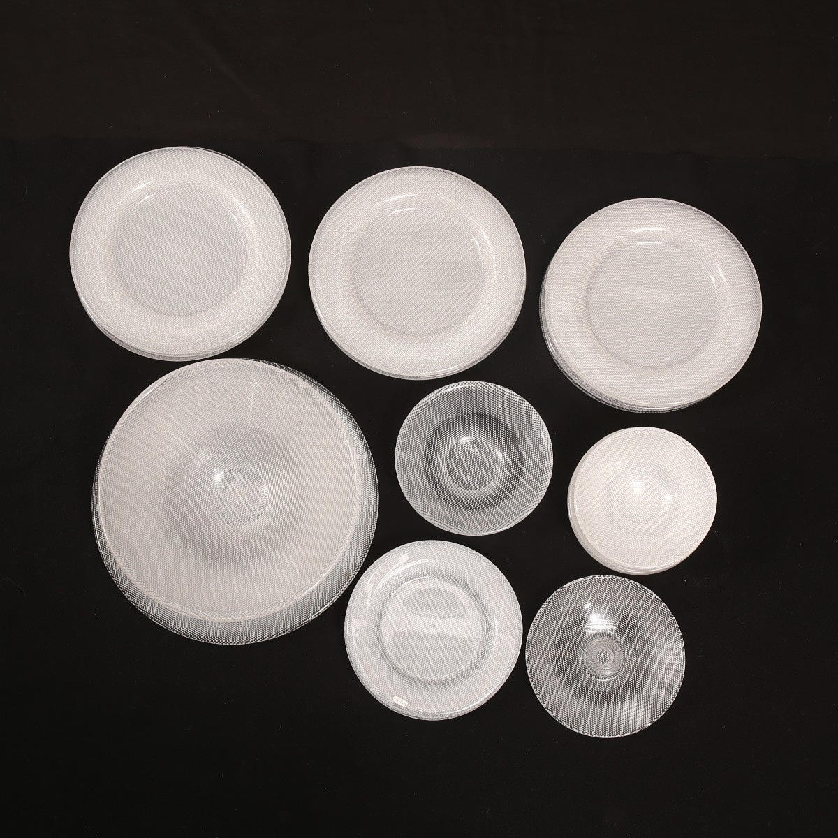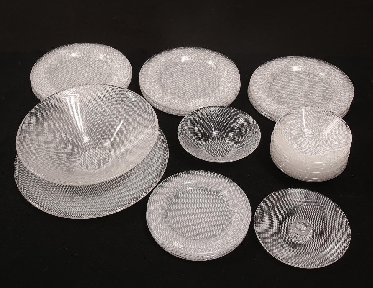 12 Essteller 26 cm 3 Teller 20,5 cm 7 Dessertschalen 16 cm 1 Platte 33,5 cm 1 Kartoffelschale 29,5 cm 1 Schale 18,5 cm 1 Kerzenhalter 18,5 cm.