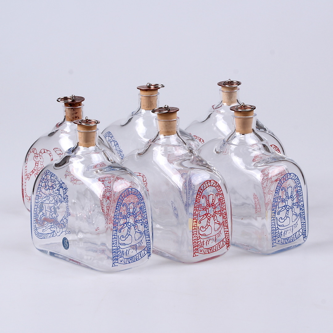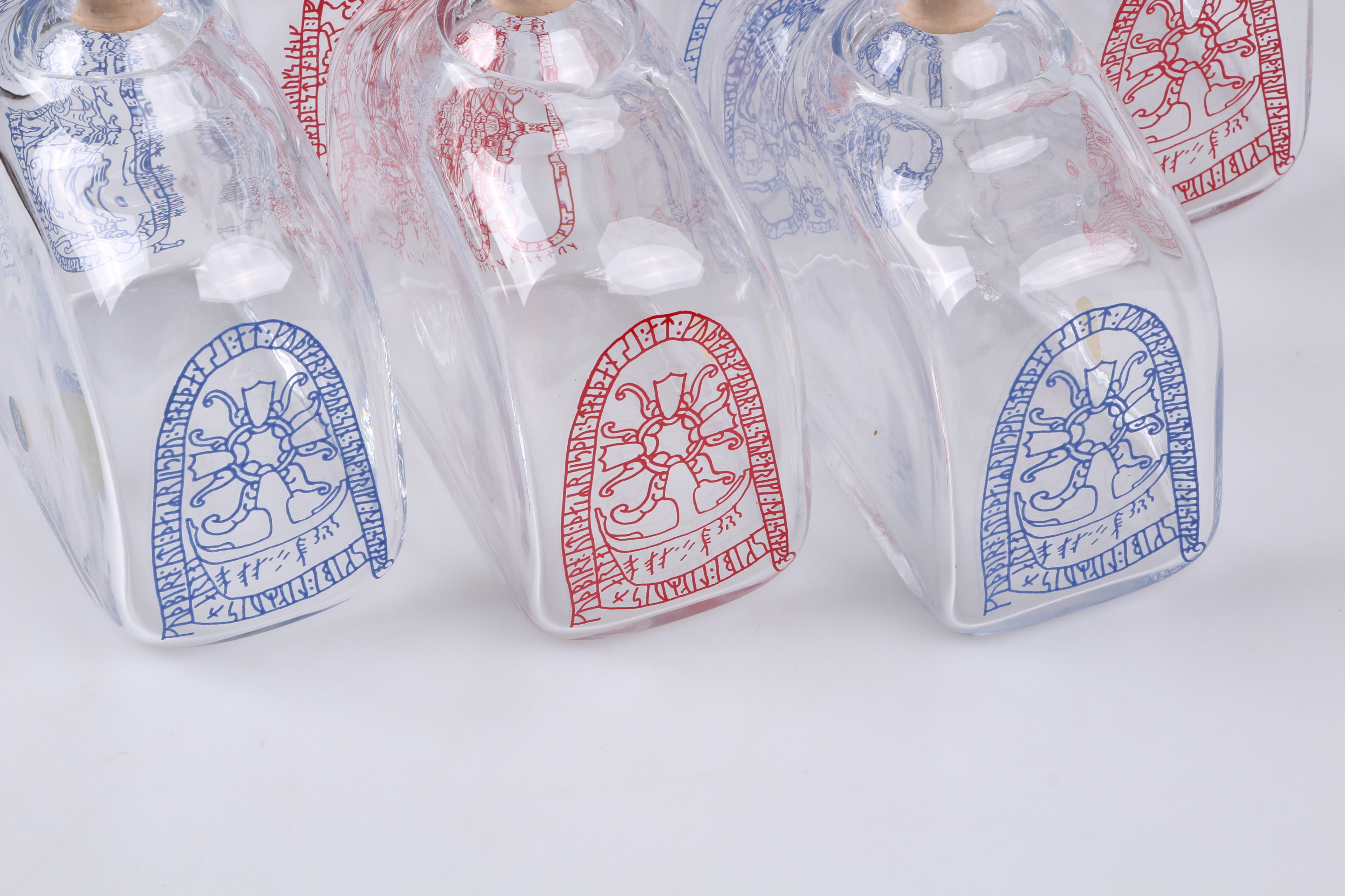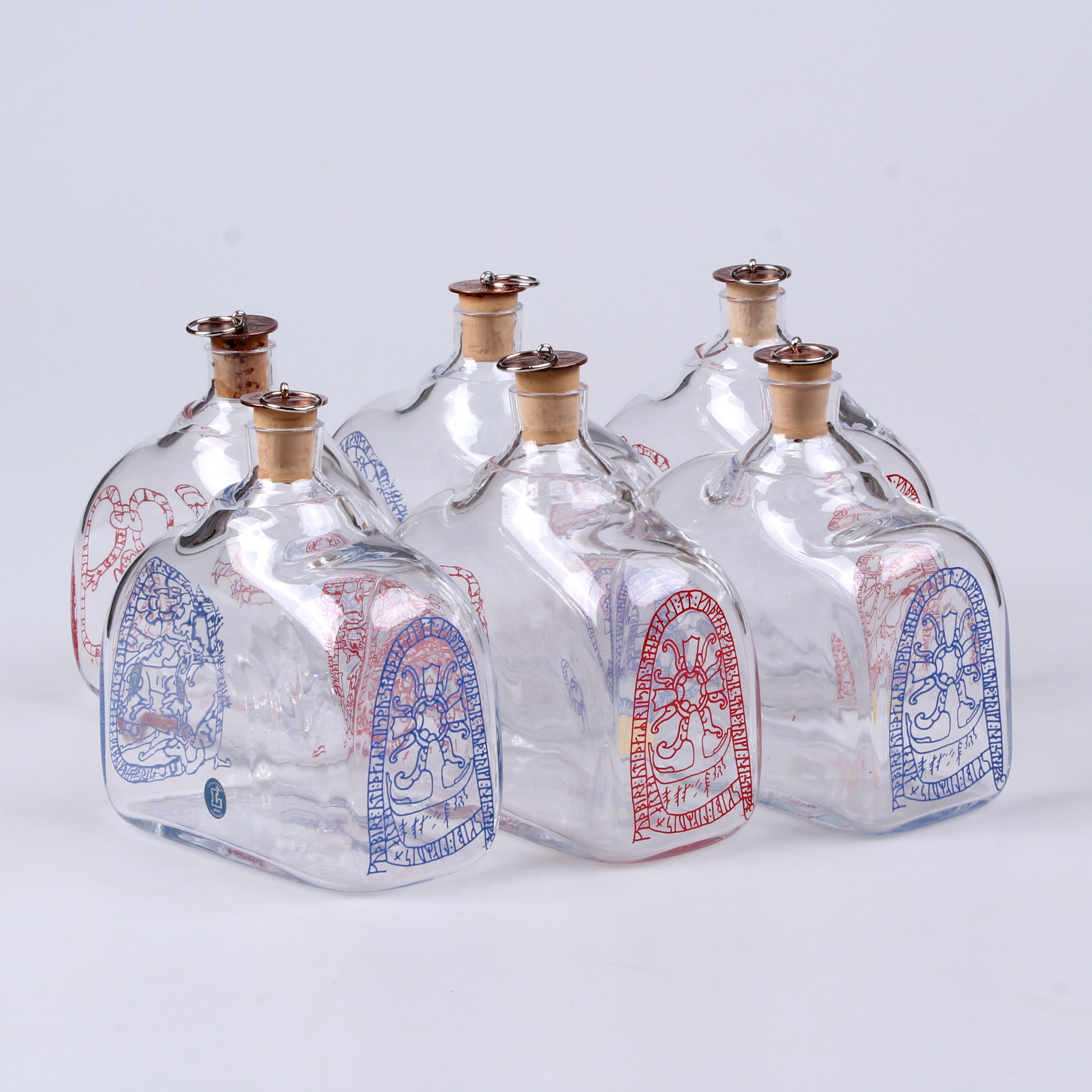 264540. BRÄNNVINSKARAFER, 6-tlg. Lindshammar, 1900.