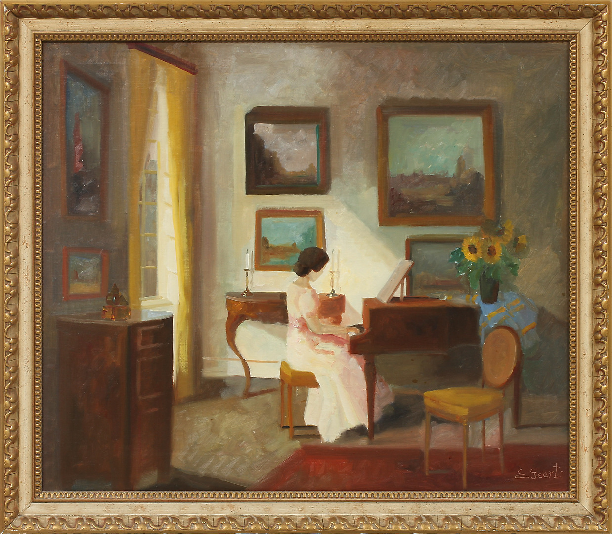 264761. EDITH GEERT. Interieur, Öl auf Leinwand, signiert.