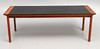 COUCHTISCH, 60er Jahre, Teak und Leder.