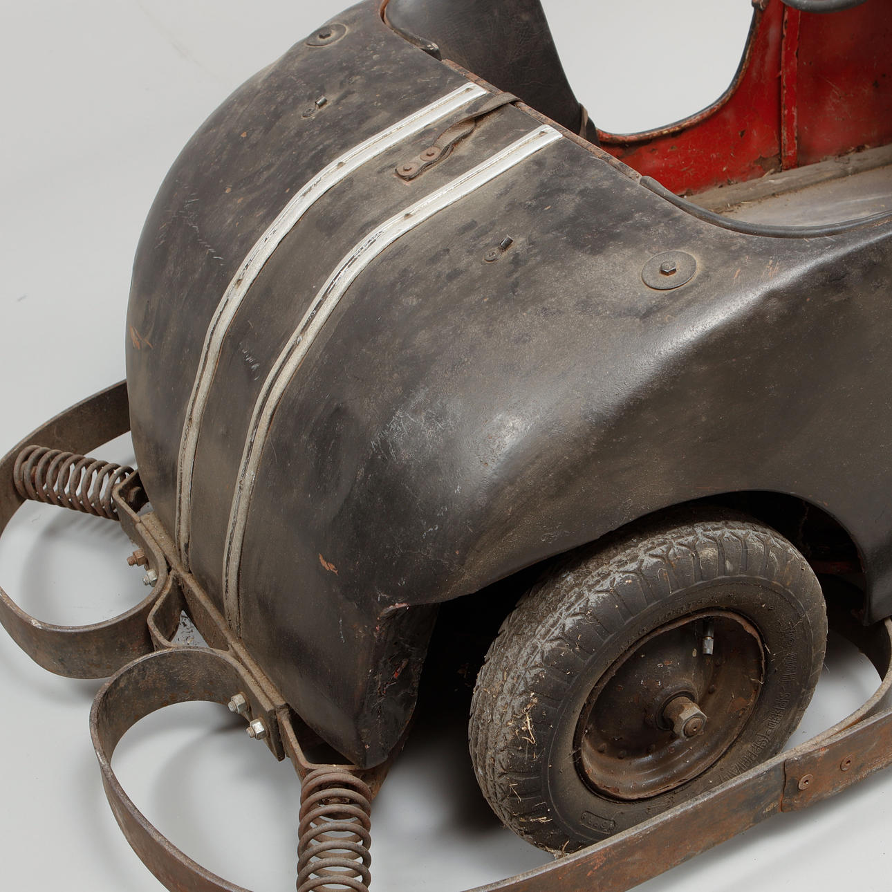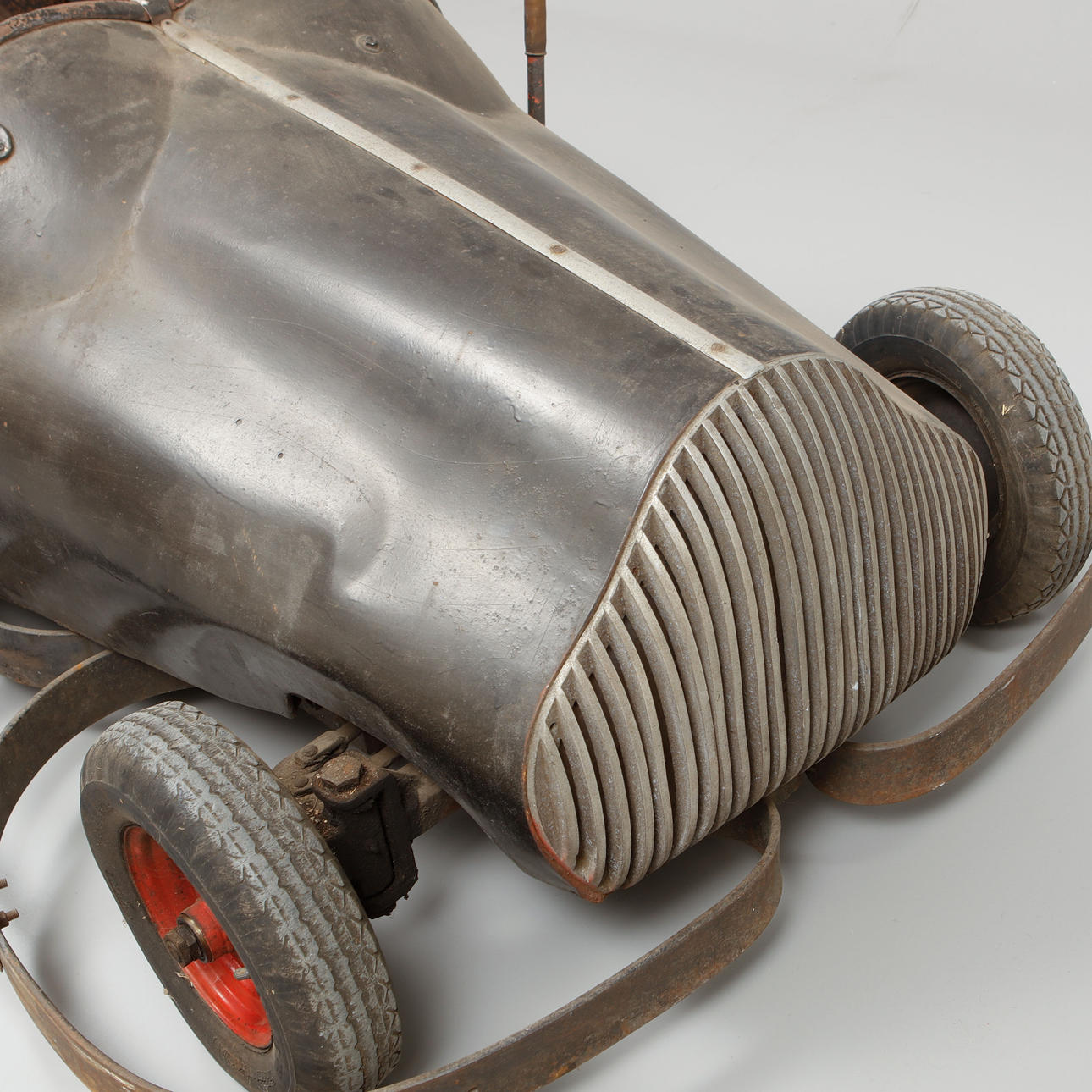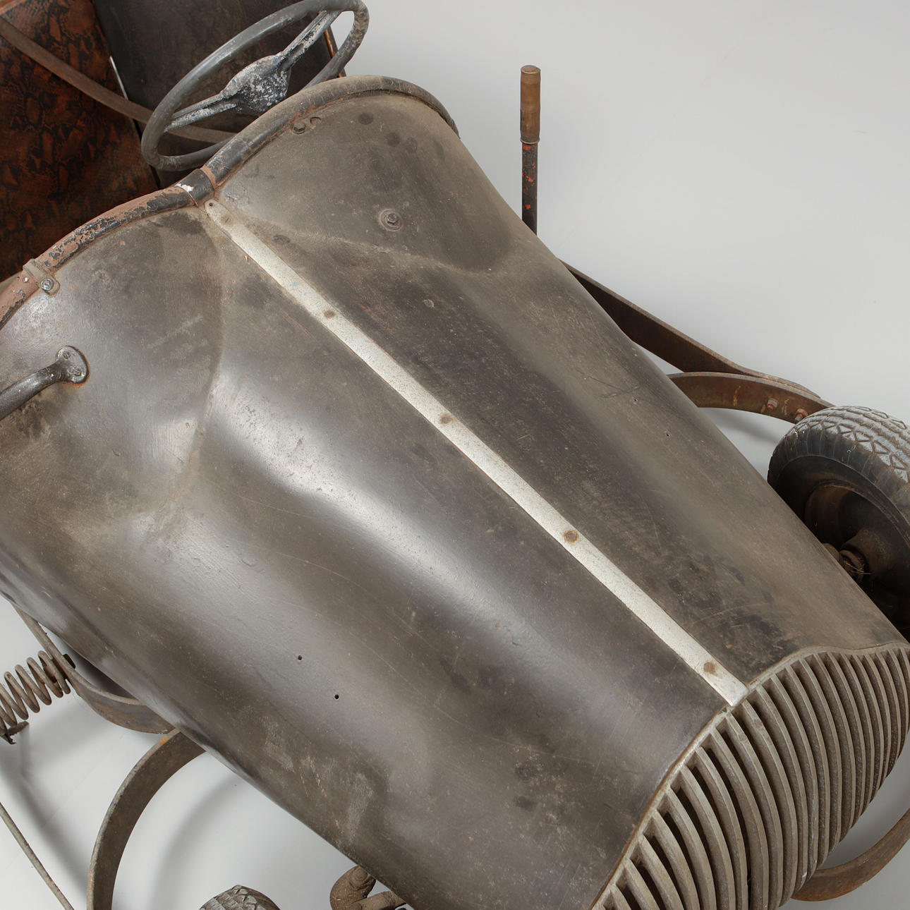 Lackiertes Blech. Sitz aus Kunstleder und synthetischem Schlangenleder. Länge ca. 225 cm, Breite ca. 125 cm, Höhe ca. 95 cm.