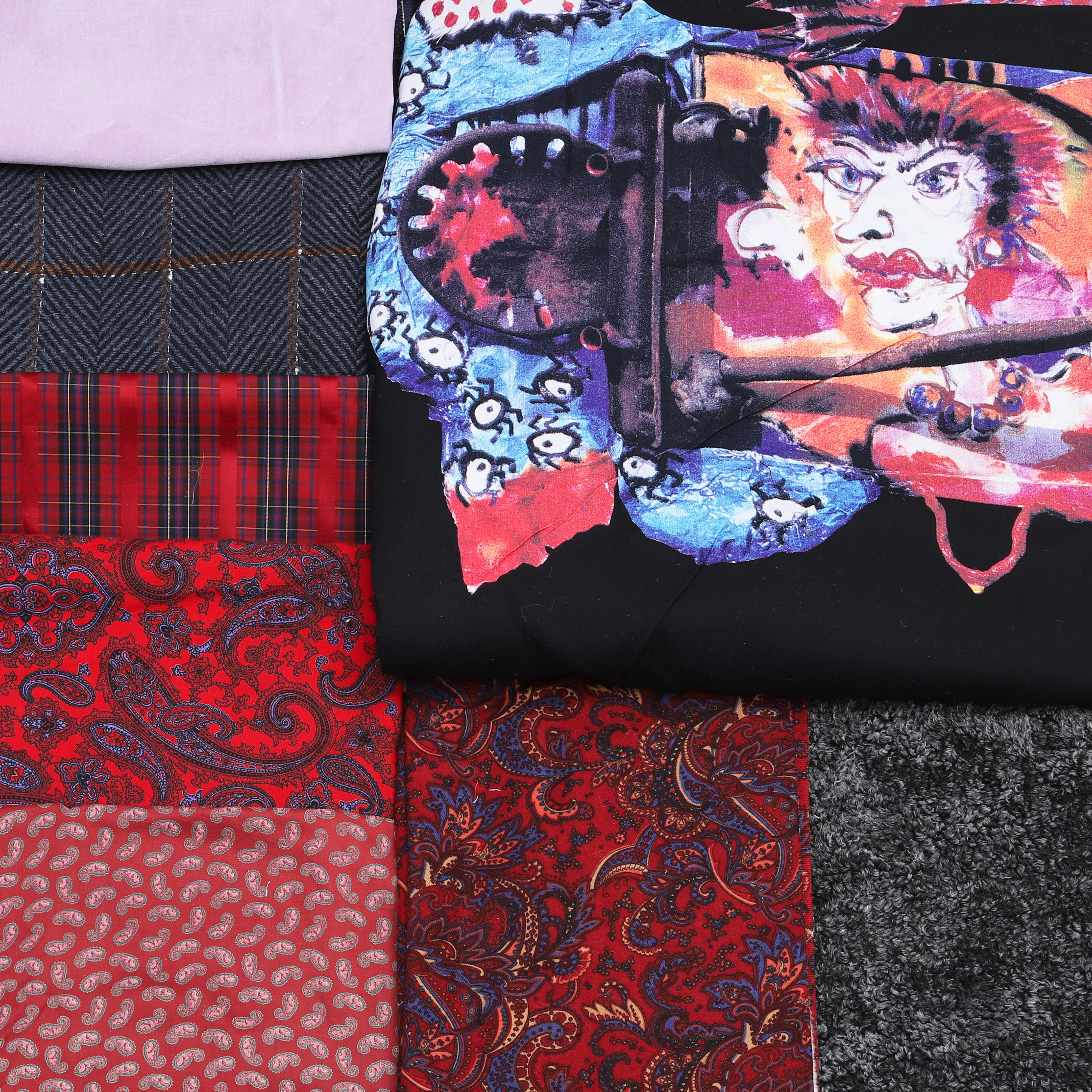 2665584. STOFFE, 8 Stück, gemischte Muster und Materialien.