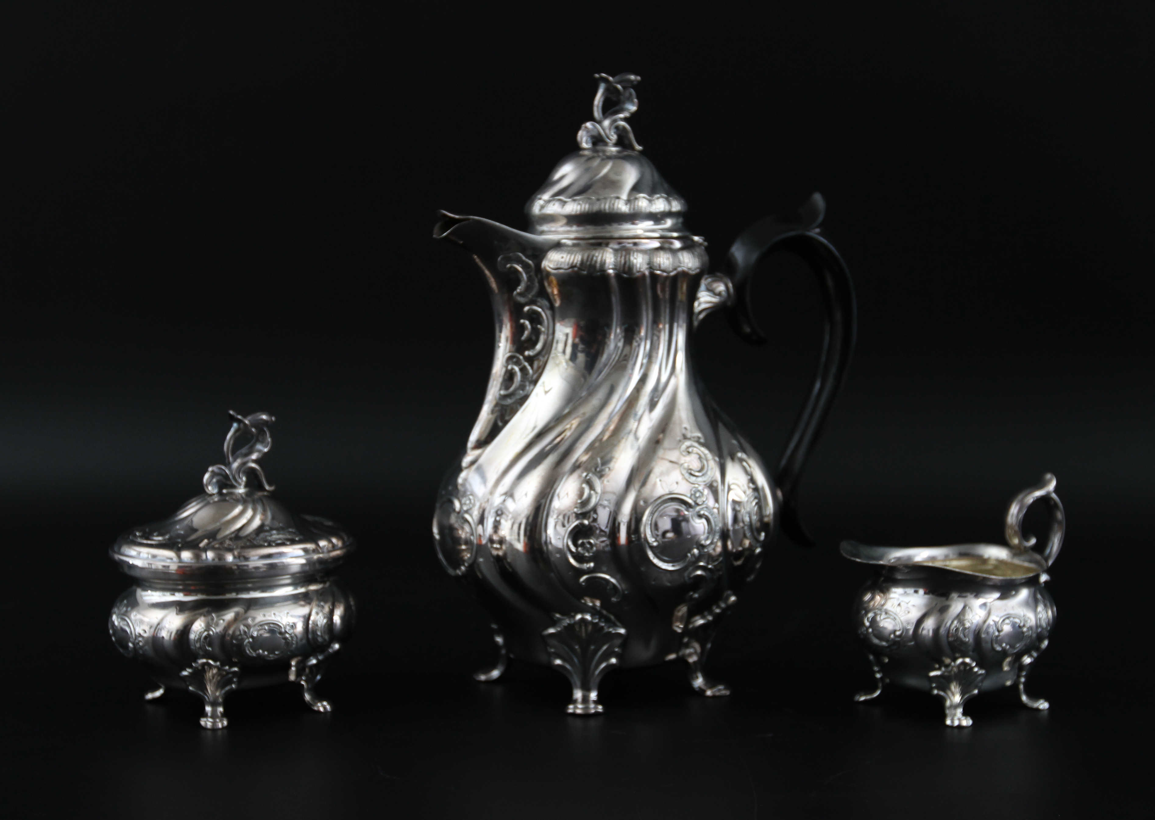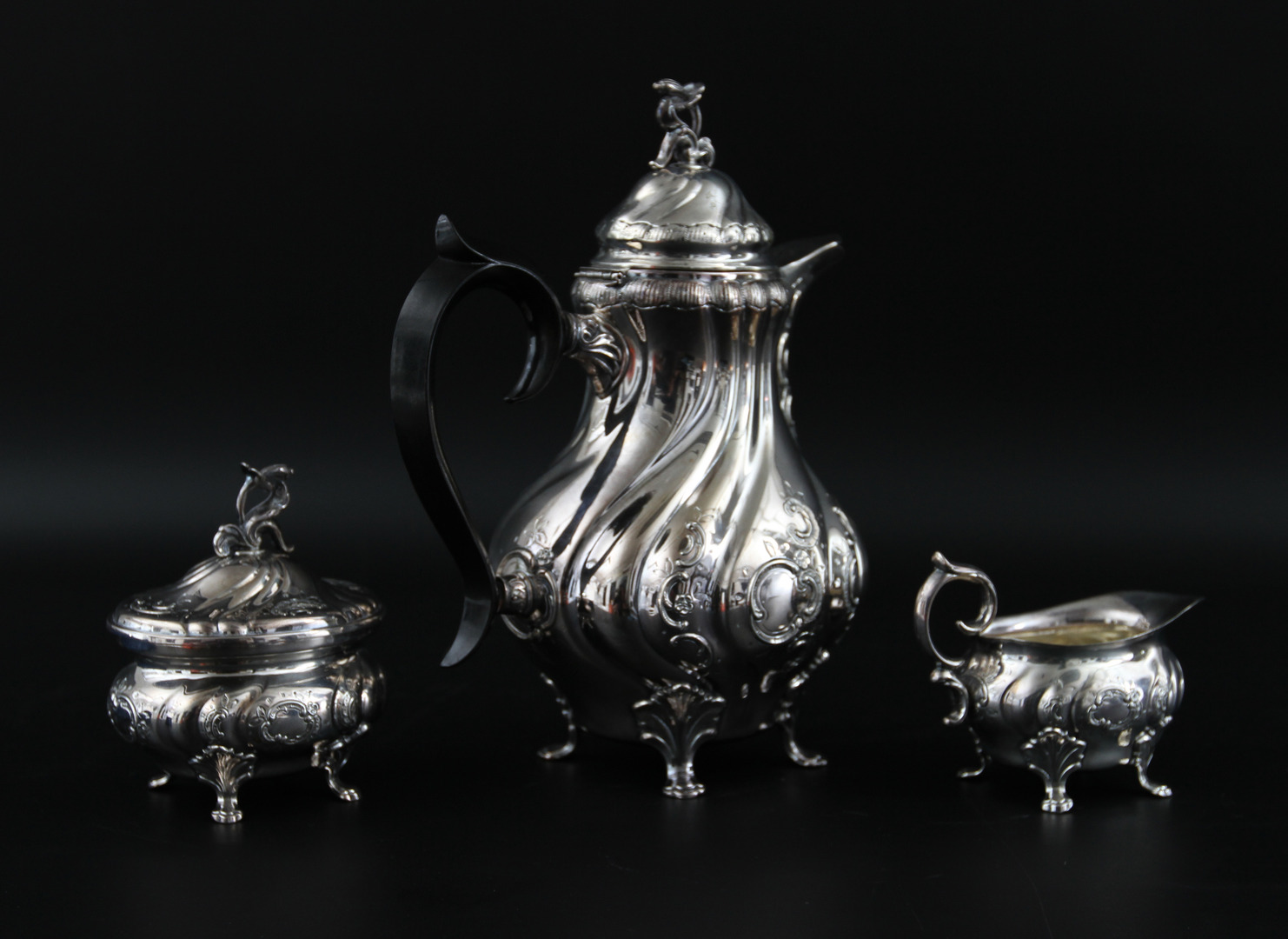 26689. KAFFEESERVICE, 3 Teile, Silber. Rokoko-Stil.