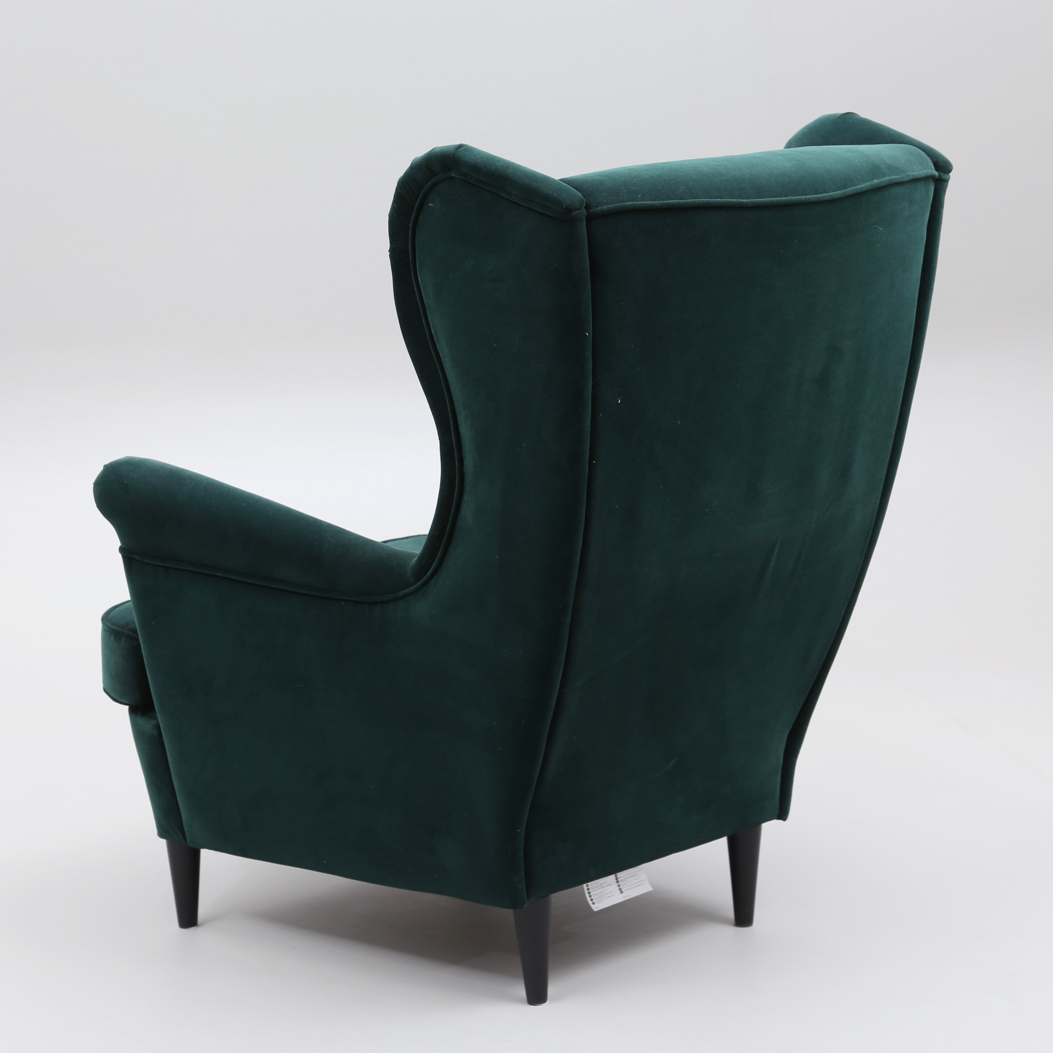 2671763. Ohrpolstersessel, "Strandmon", grüner Plüsch, Ikea.