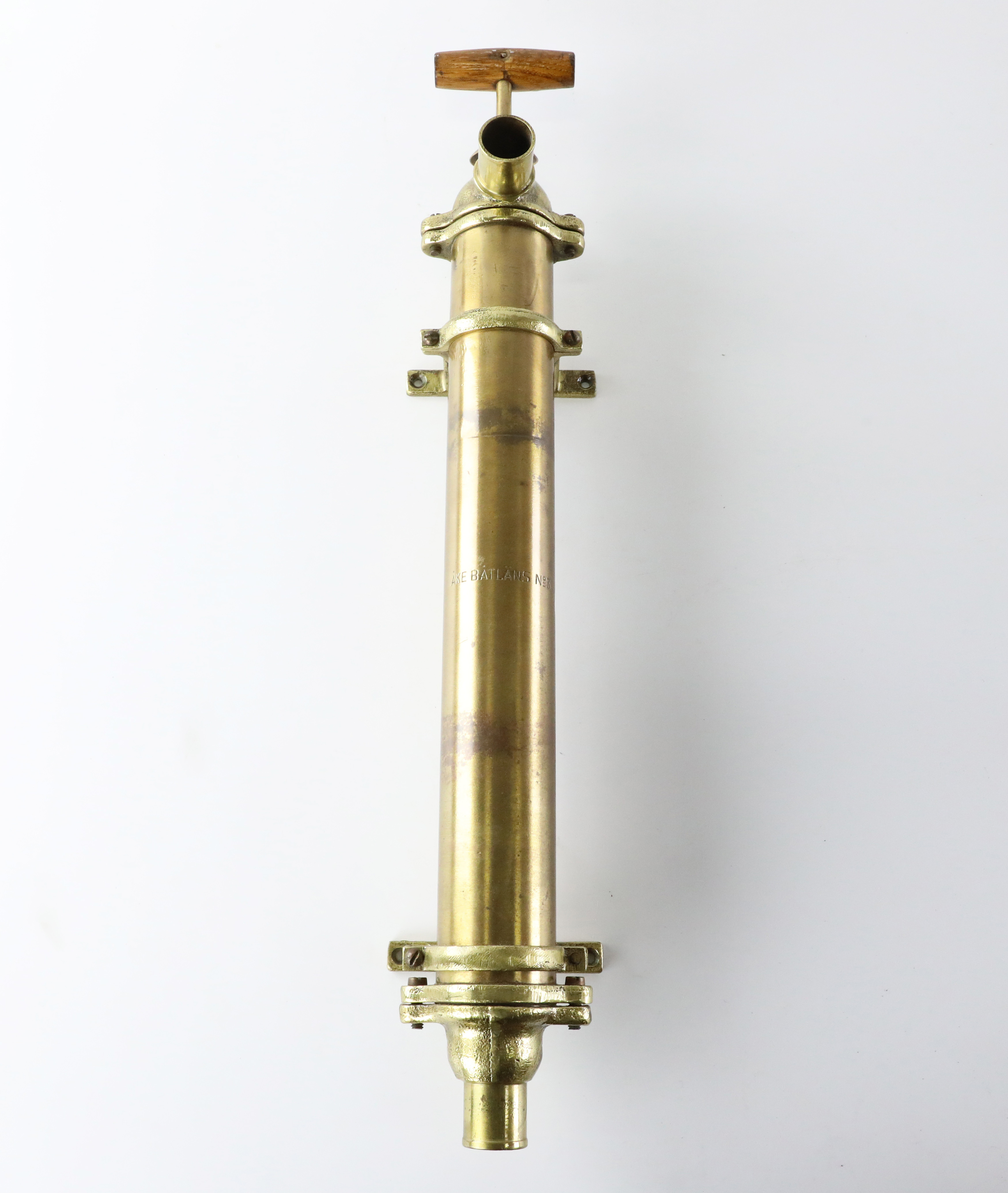 2672012. LANDEPUMPE für Boot. Messing, „Åke Båtläns Nr. 3“, 1900.