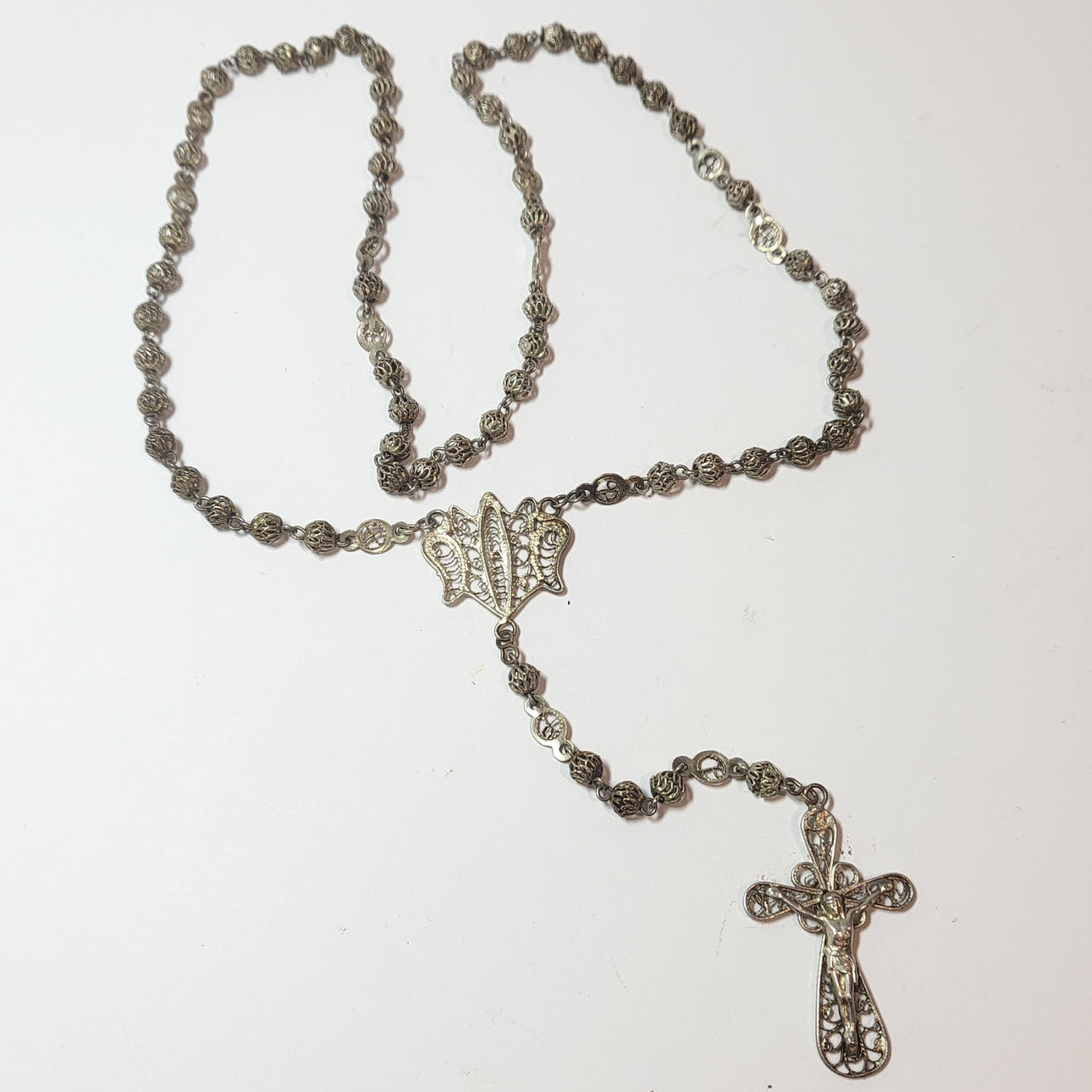 2672913. ROSENKRANZ AUS SILBER FILIGRAN.
