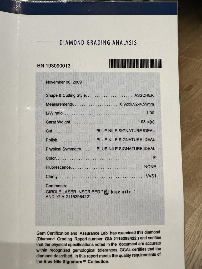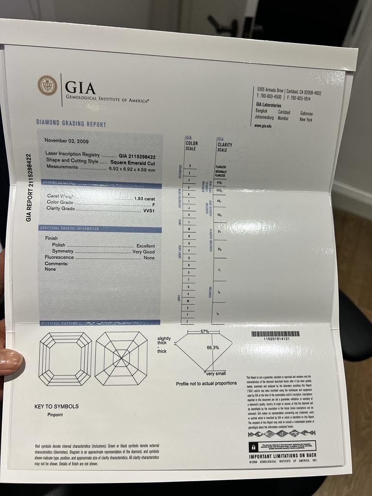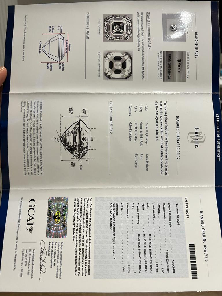 2673264. PLATIN 1,93 KT. VVS1 DIAMANT MIT ASSCHER-SCHLIFF.