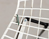 Drahtstuhl 'Modell 420' von Harry Bertoia (1915–1978) für Knoll International. Konstruktion aus Stahl. Entwurf aus den 1950er Jahren. Schwarz lackierte Kufenfüße und ein organisch geformter Sitz aus Stahldraht in weiß.