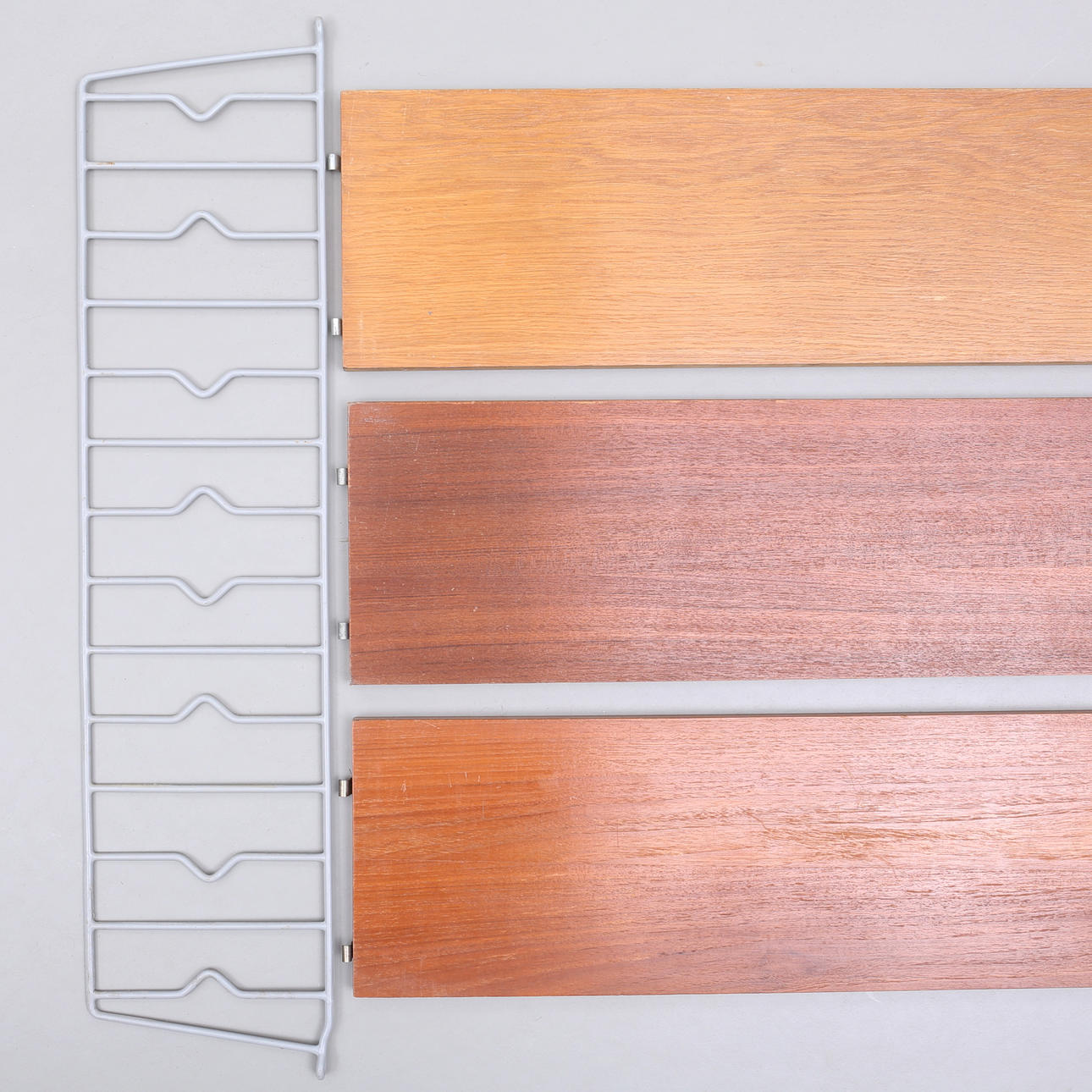 Giebel, ein Paar, Höhe 77 cm. Regal 3 Stück Länge 78, Tiefe 20 cm.