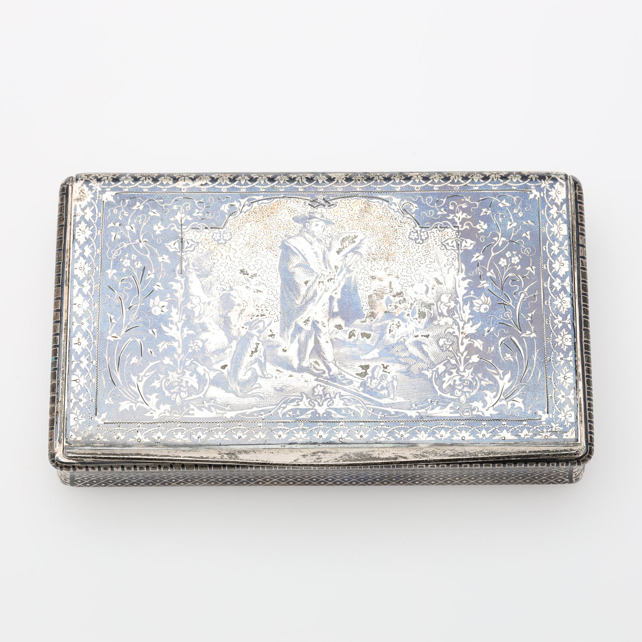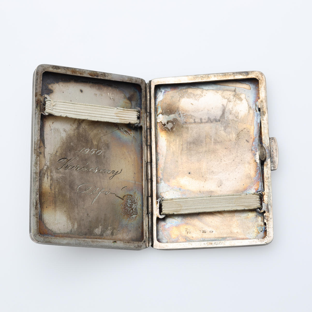 Maße: ca. 9,5x5,5x2cm Zigarettenetui, Datumsgravur auf der Innenseite des Deckels.