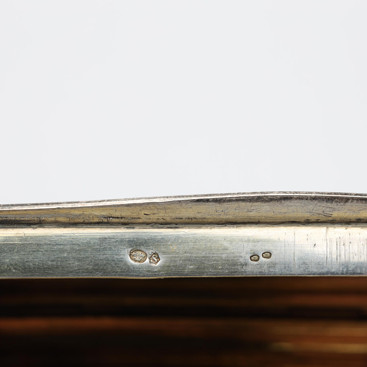 Schnupftabakdose mit Dekoration, schwedischen Importstempeln und innen vergoldet.