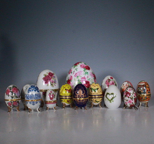 2691271. EINE SAMMLUNG VON ZWANZIG ATLAS EDITION FABERGÉ STYLE EIER, VERPACKT.