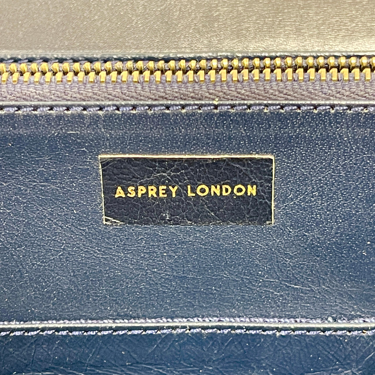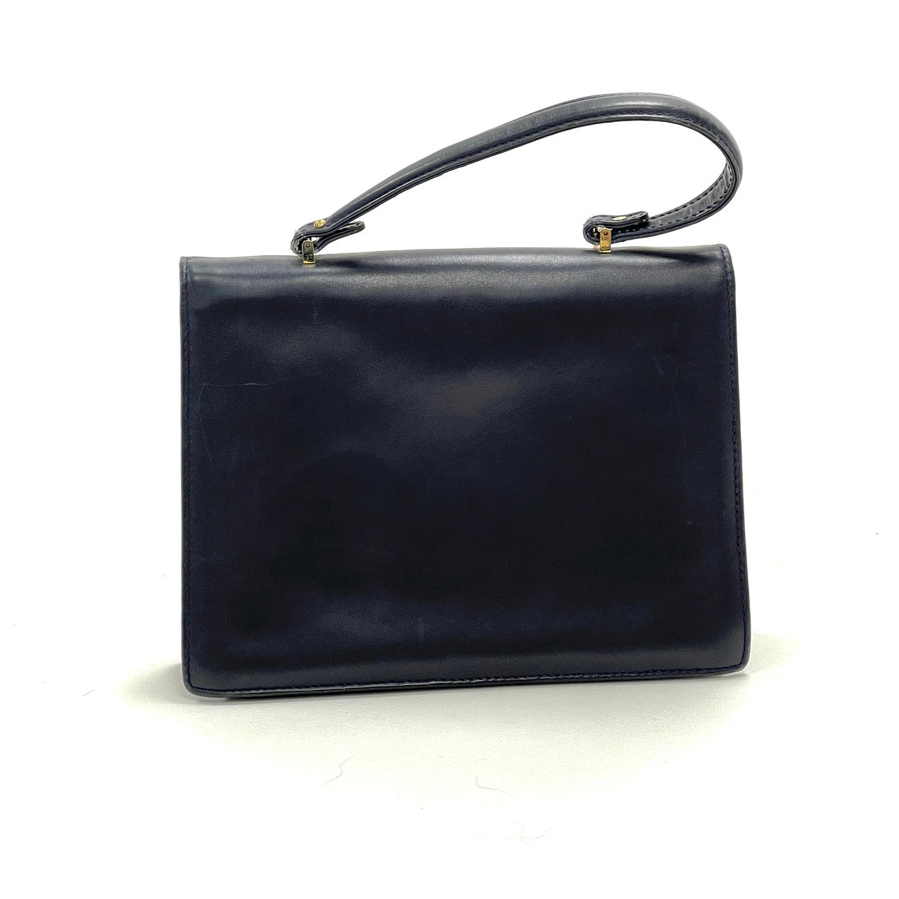 Marineblaue Baguette-Handtasche im Vintage-Stil von Asprey mit vergoldetem Metallverschluss, H. 22 cm. B. 29cm.