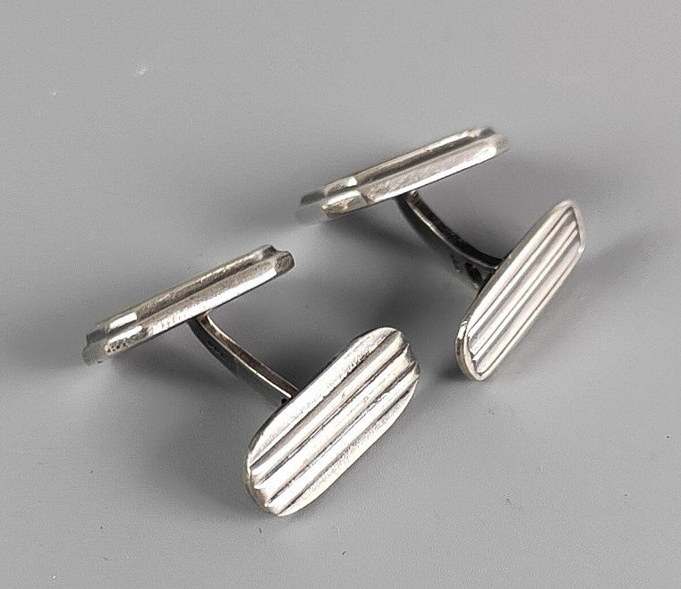 Manschettenknöpfe aus Silber 800, Schauseiten mit polierten Pelmuttplatten belegt, sehr gut erhalten, Schauseiten 15 x 17 mm.
