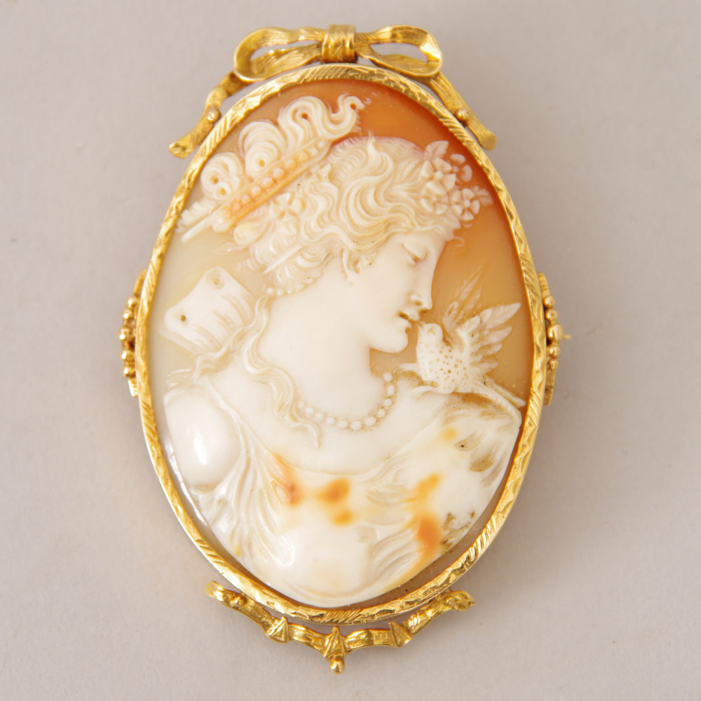 270102. ANHÄNGER / BROSCHE, Kamee / 18 Karat Gold.