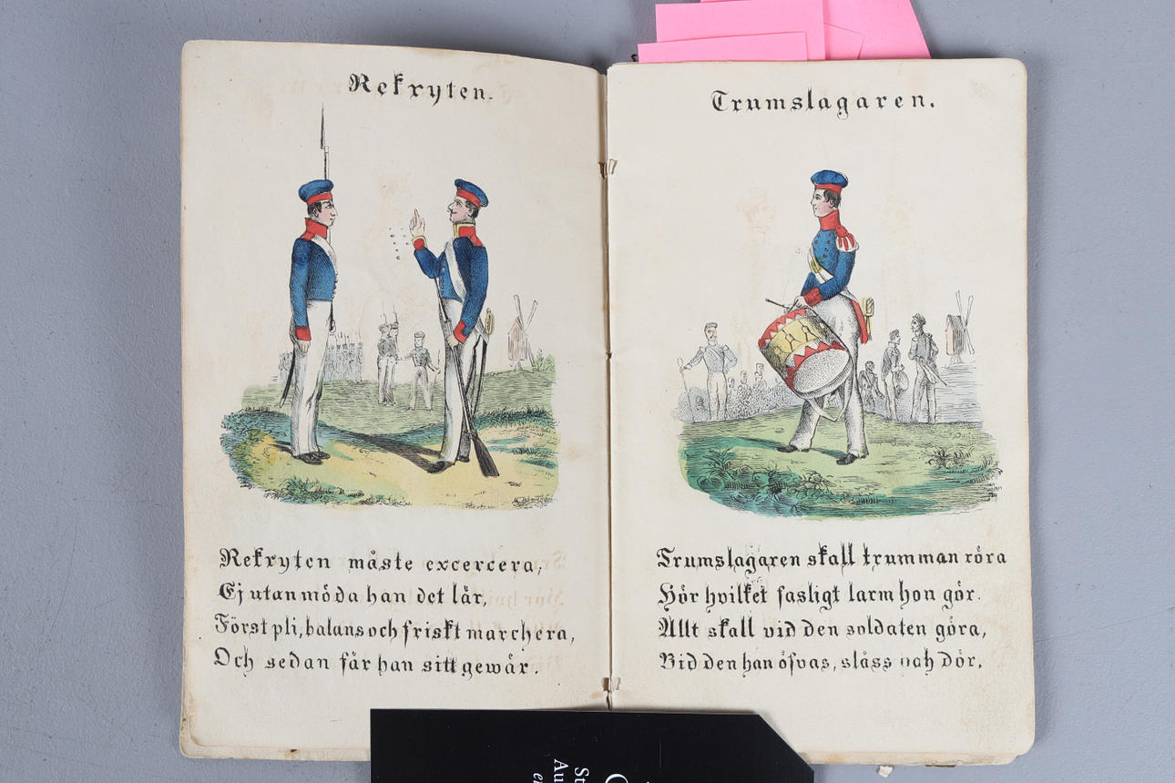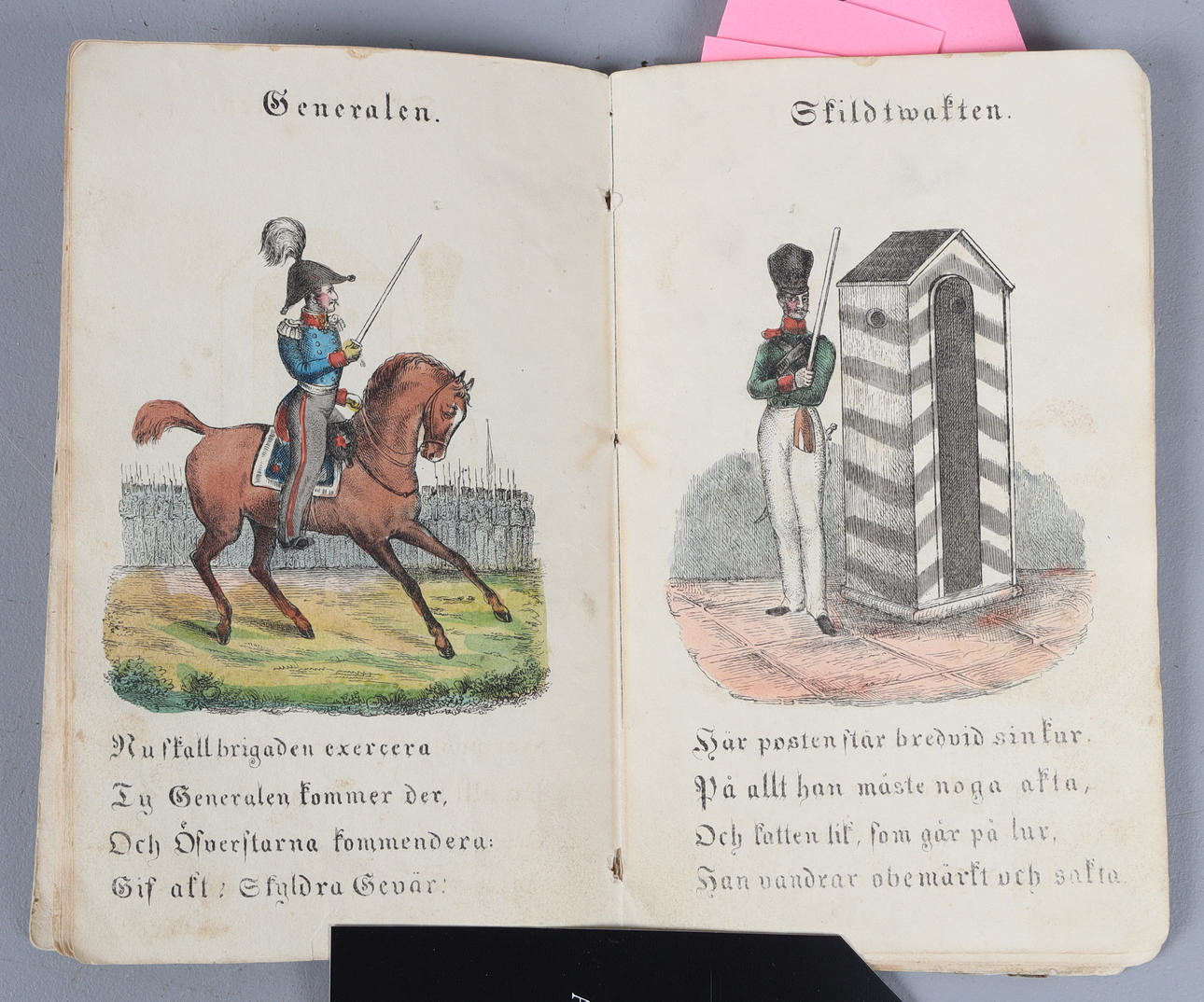 Holting, G., Pseudonym b. C. G. Winckelman, Soldaten. Ein Bilderbuch mit Text für Kinder (1841). 1a handkoloriert. Illustrationen. Seitenhöhe ca. 163 mm.