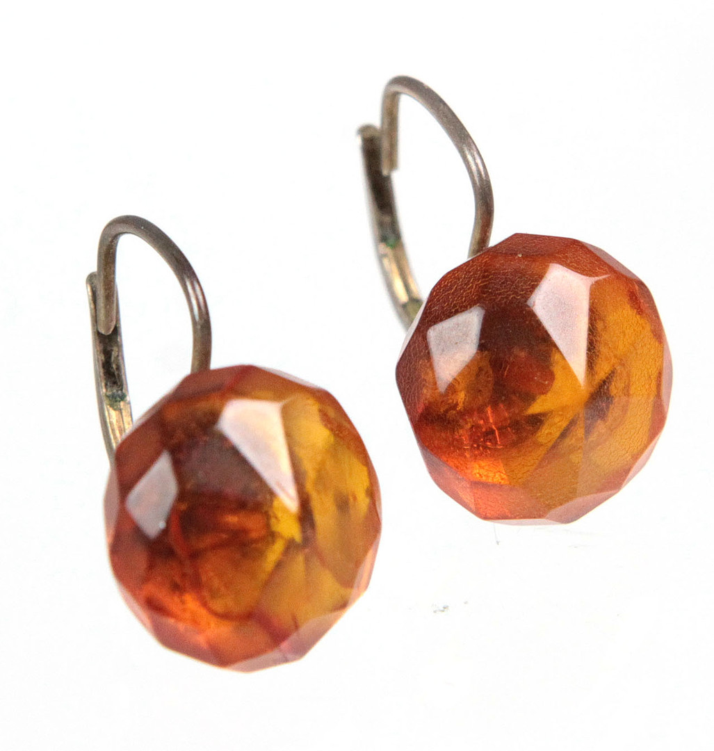 2706054. ANTIKE BERNSTEIN OHRRINGE, SILBER.