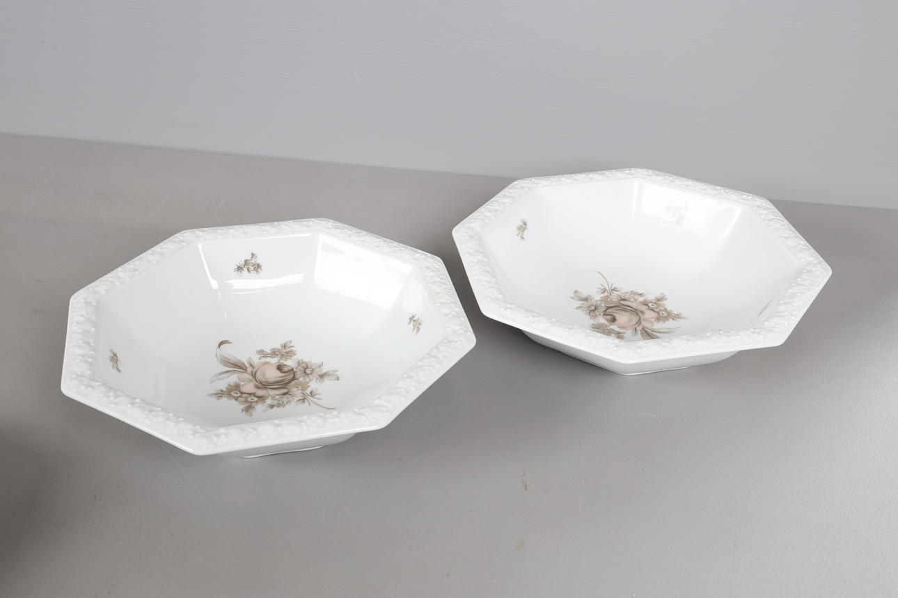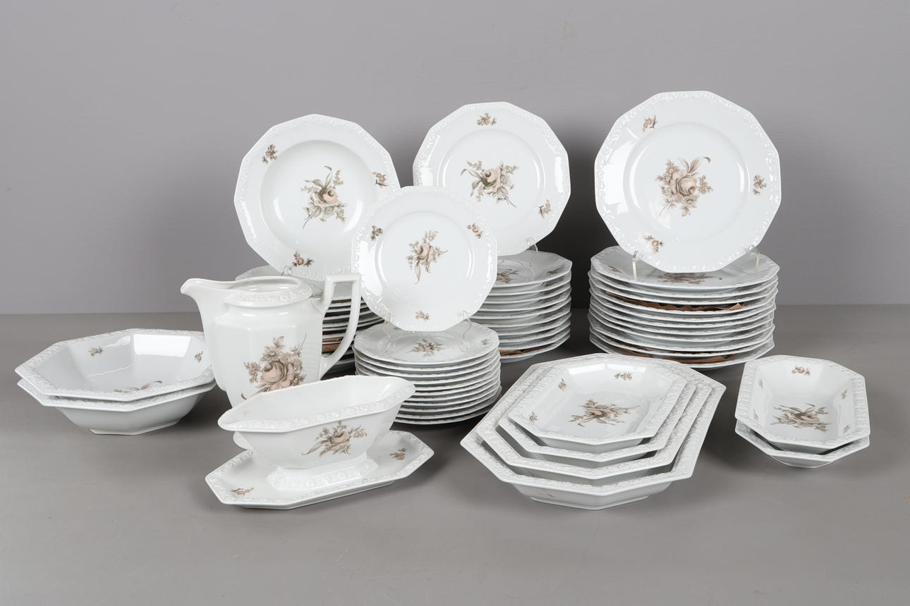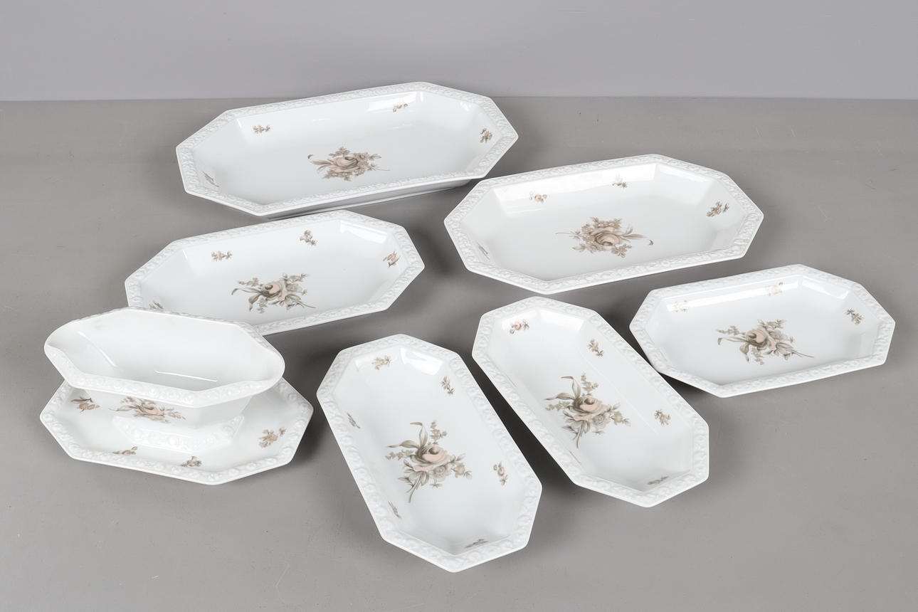 bestehend aus; 12 Speiseteller 11 Vorspeisenteller 12 Teller 12 tief 2 Servierschalen 1 Kanne, 6 Servierschalen in verschiedenen Größen 1 Sauciere.
