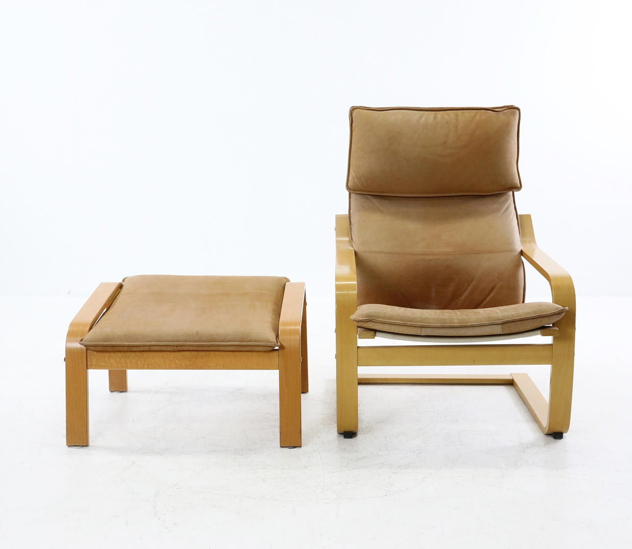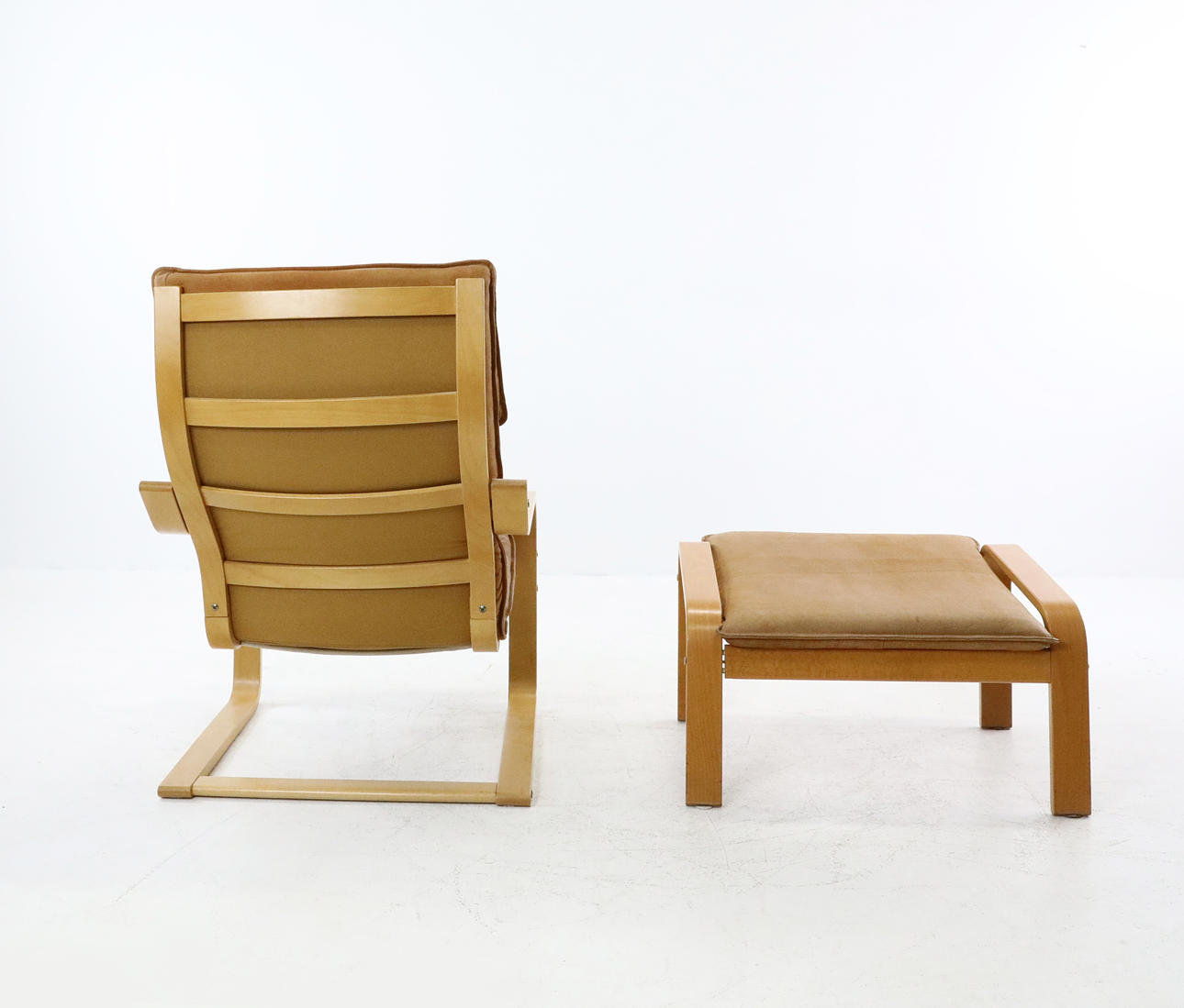 Sessel, Höhe 96 cm, Breite ca. 67 cm Hocker, Höhe 40 cm, Breite 67 cm.