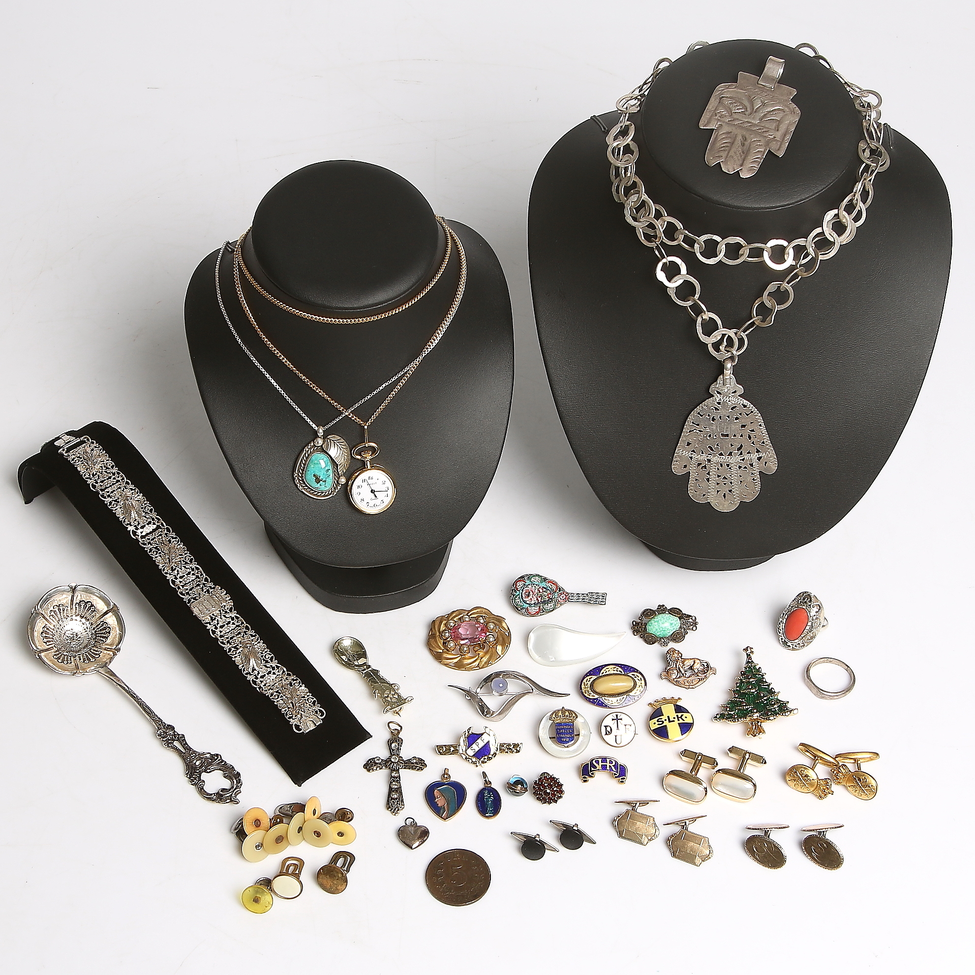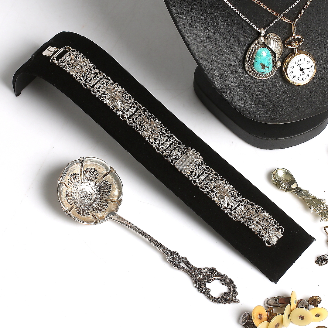 270898. SCHMUCK, u.a. Silberobjekte ca. 150 Gramm.