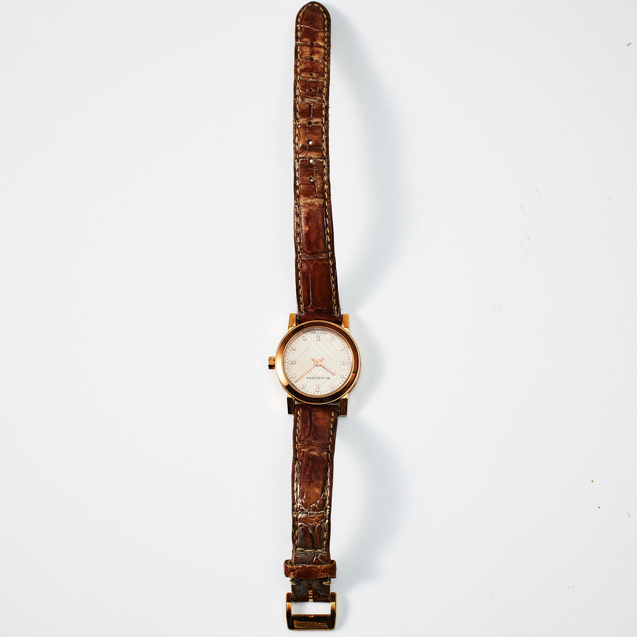 Quarz, Saphirglas, Indizes mit Diamanten, Gehäusenr. 20073, BU9216, Lederarmband mit Originalschließe, Durchmesser 26 mm, Originalbox, Papiere.