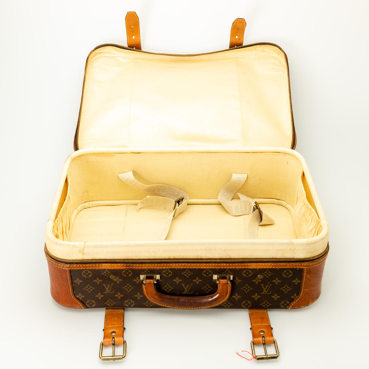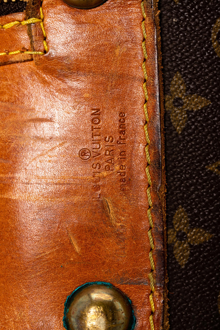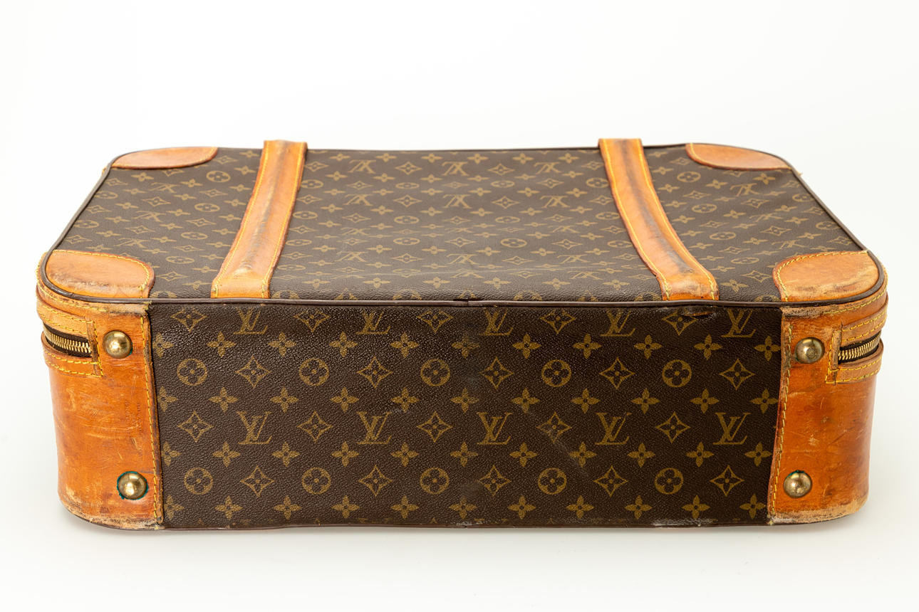 Rindsleder u.a./Messing. Rechteckiger, Monogram Canvas. Gestempelte Firmenbezeichnung '854' und gestempelter Firmenname. Firmenmonogramm auf dem Zipper, Firmenname auf einer Niete, ca. 60x43x19 cm.