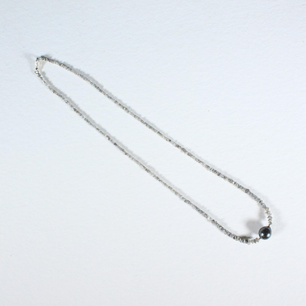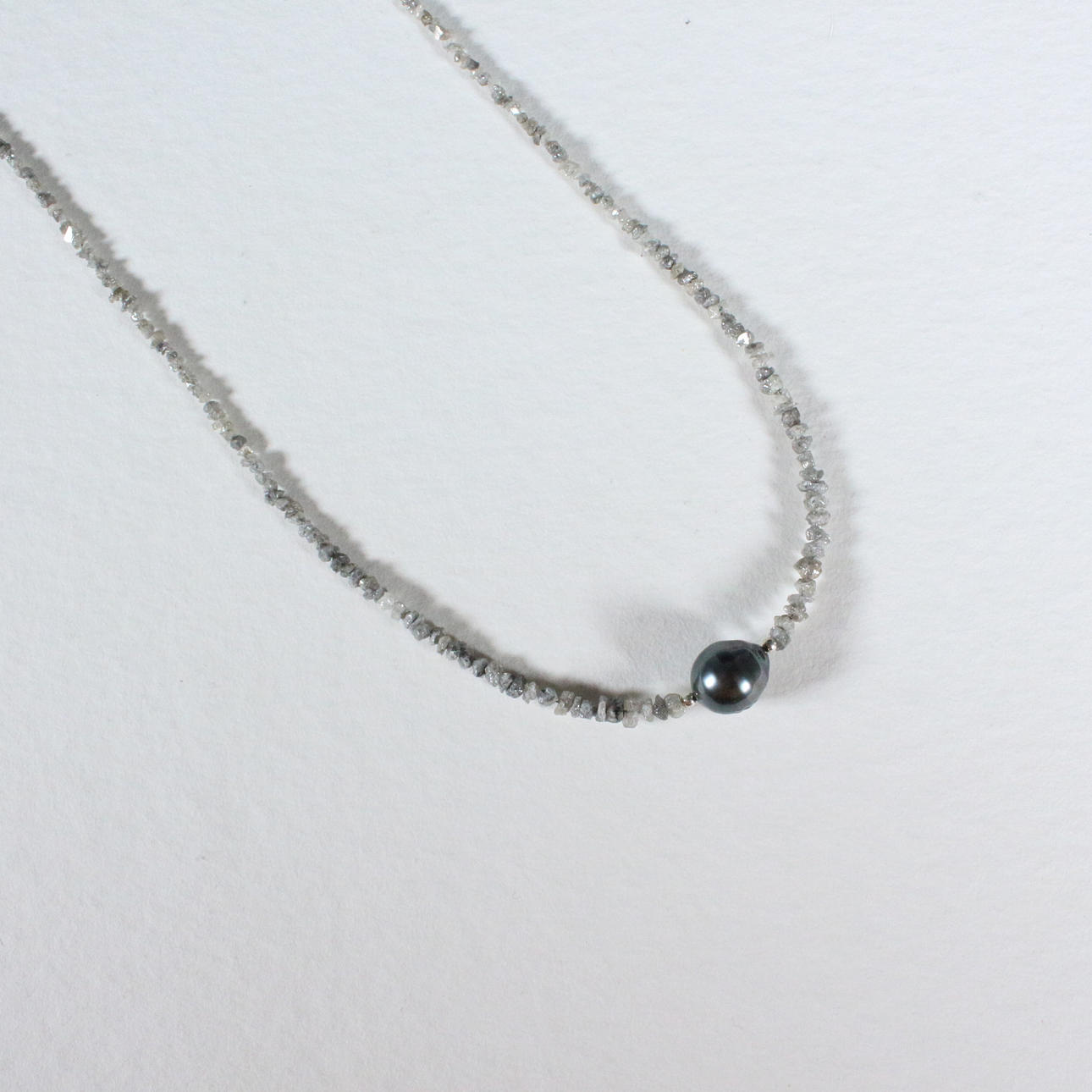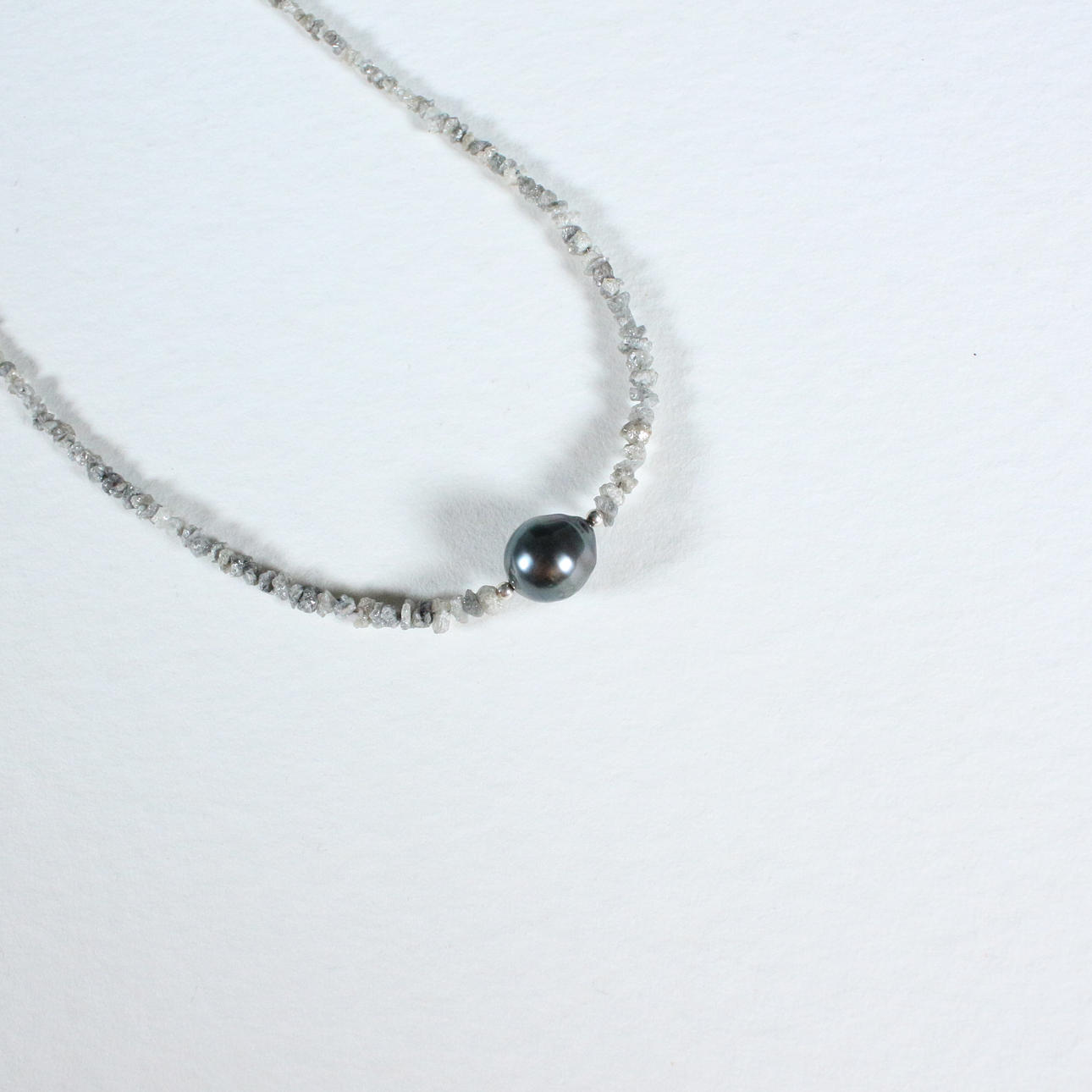 2713449. Rohdiamanten-Kette mit Tahitiperle.