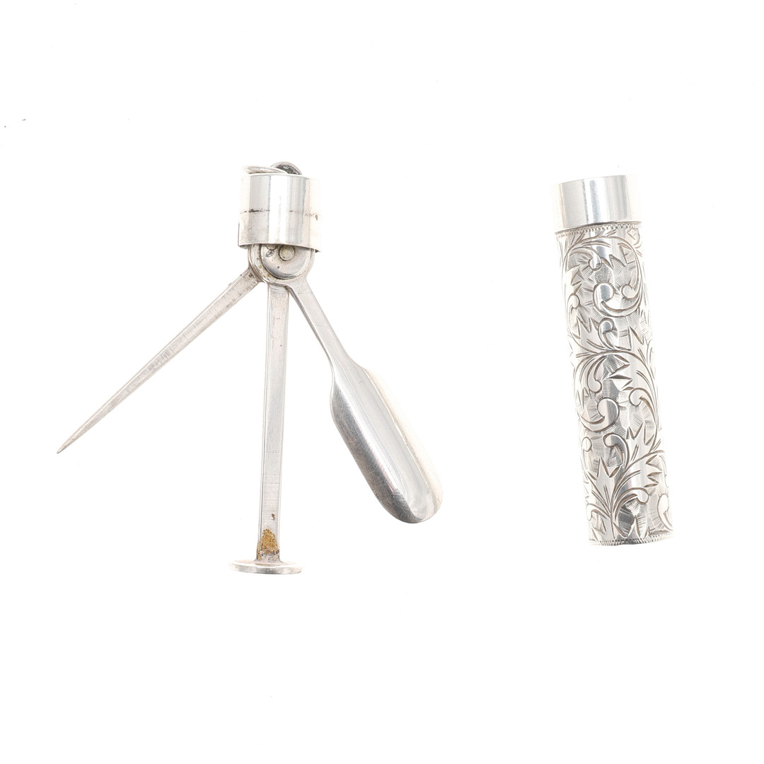 2713522. EIN EDWARDISCHER SILBERPFEIFENREINIGER, PIERCER & TAMPER.