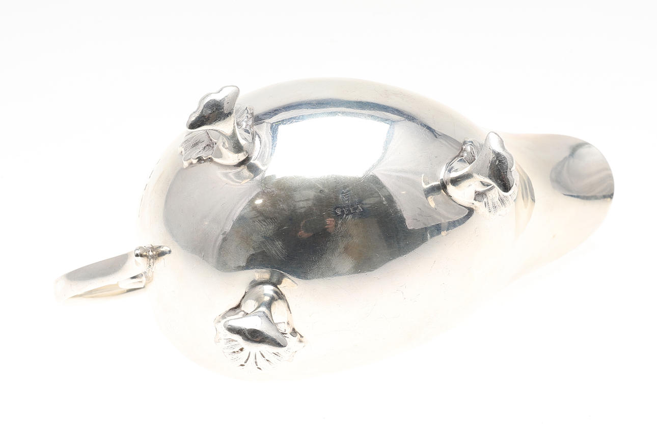 mit Schnabelgriff und auf drei Beinen erhoben, von James Dixon & Sons Ltd, Sheffield 1933; 7,75" (19,8 cm) lang; 10,1 ozt.