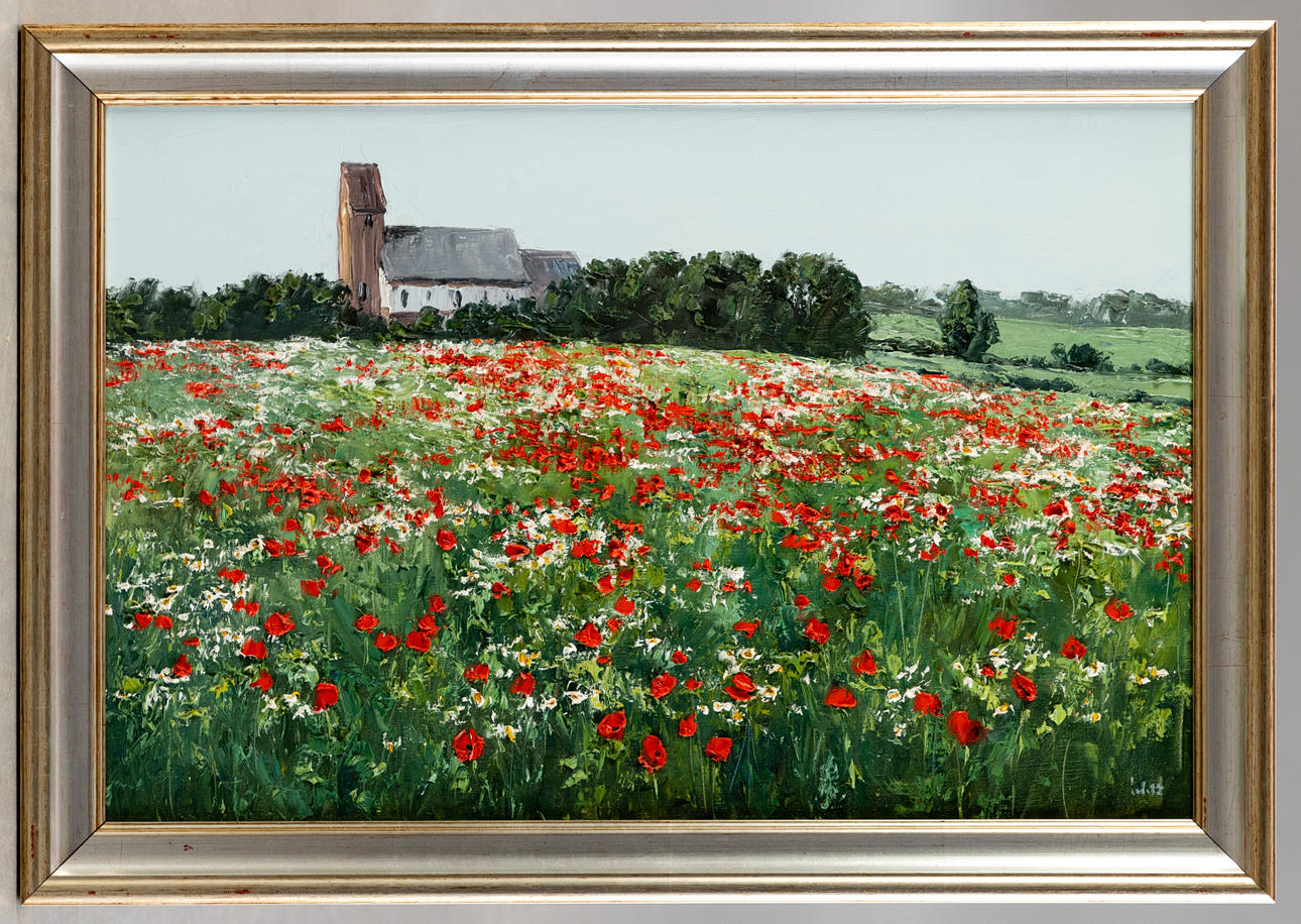 Peter Witt (geb. 1966), Mohnblumen vor Keitumer Kirche, Öl auf Leinwand, signiert, ca. 40 x 60 cm, mit Rahmen ca. 47 x 68 cm.