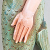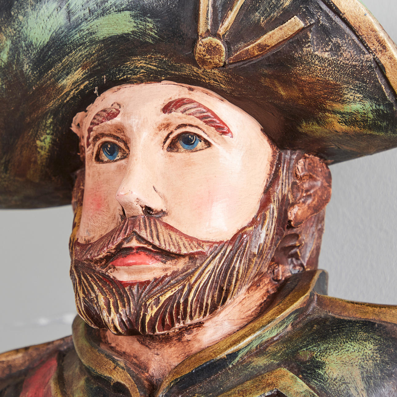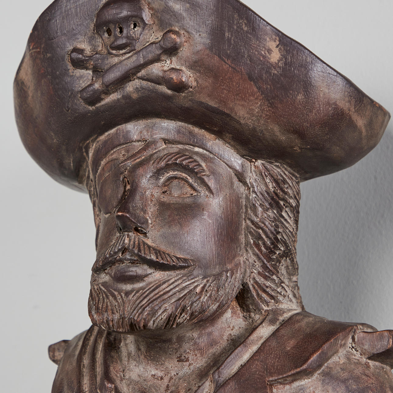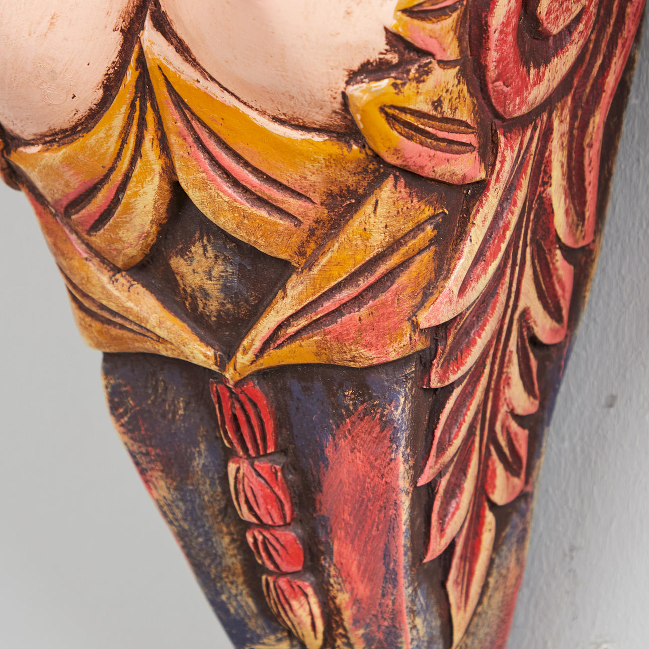 Konvolut, Wandobjekte / Galionsfiguren, Holz. Konvolut bestehend aus vier aus Holz geschnitzten Wandojekten in Form von zwei männlichen und zwei weiblichen Galinonsfiguren, drei von ihnen mit polychromer Staffage sowie jeweils rückseitig mit einer Aufhängevorrichtung versehen, H.45-61cm, B.15-22cm, T.16-20cm (4).