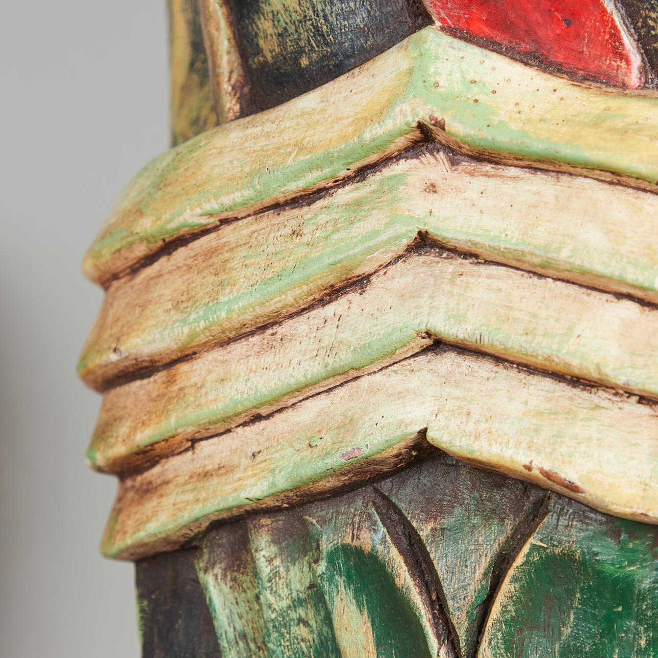 Altersgemäße Gebrauchs- und Reibespuren, vereinzelt geringfügige Bestoßungen im Holz sowie Patinaabrieb.