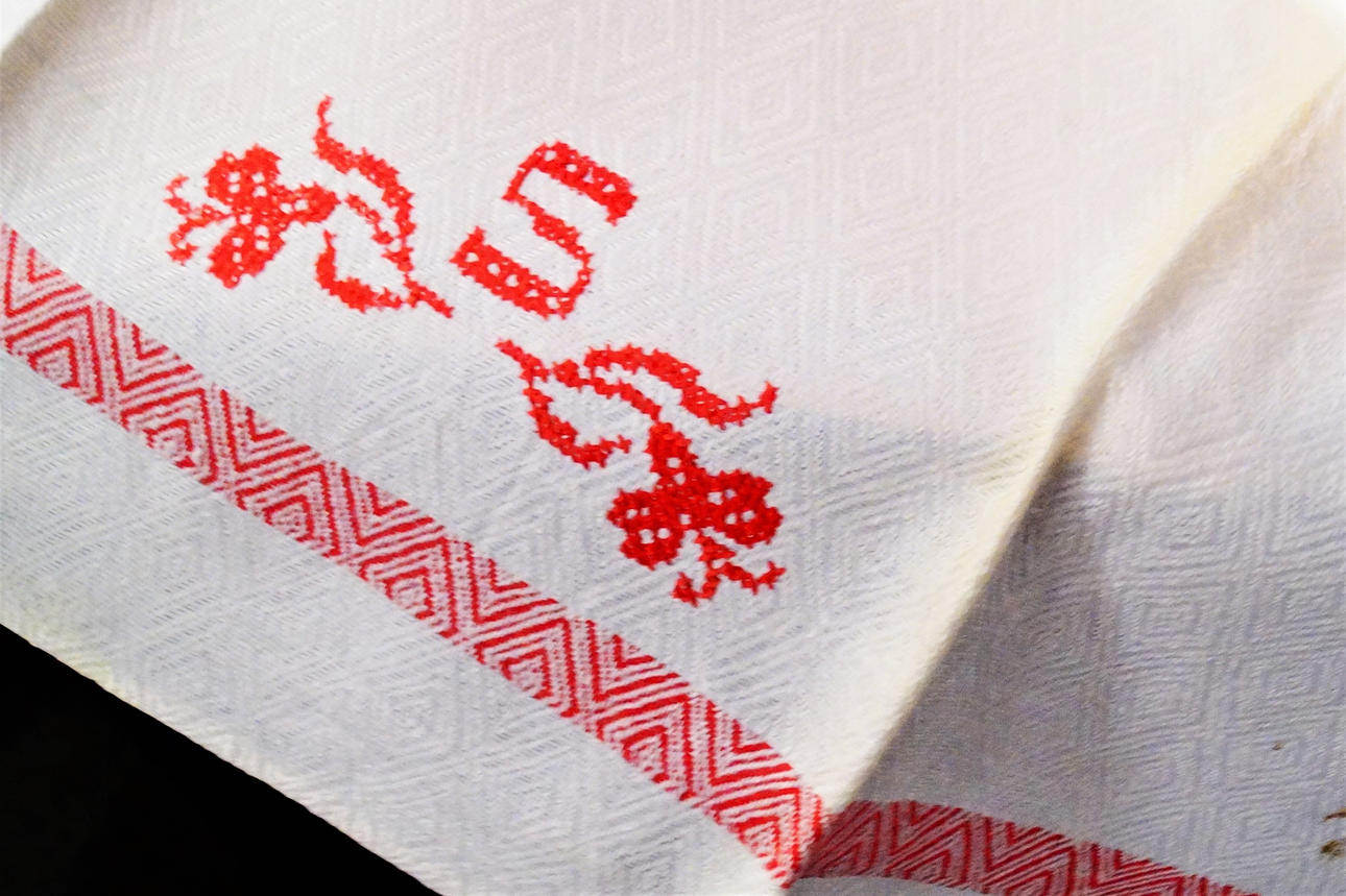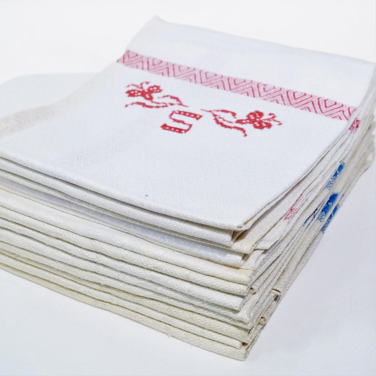 8 mit blauem Dekor, 67 x 55 cm, Monogramm S 5 mit rotem Dekor, 66 x 55 cm, Monogramm S, eines mit anderem Dekor, Monogramm SK 61 x 55 cm.