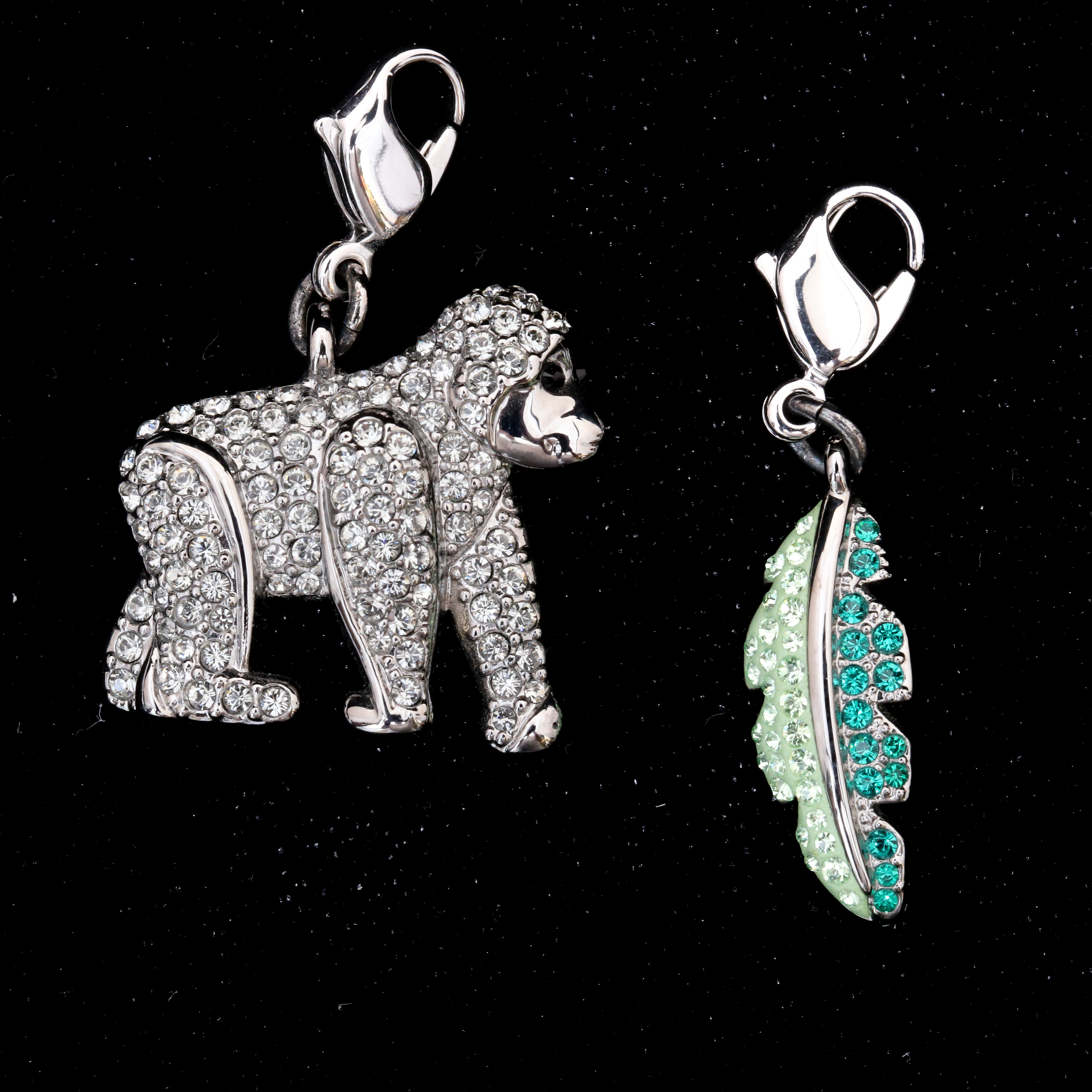 2739739. SWAROVSKI: GORILLA-CHARME-SET, SCHLÜSSELANHÄNGER & STIFT.