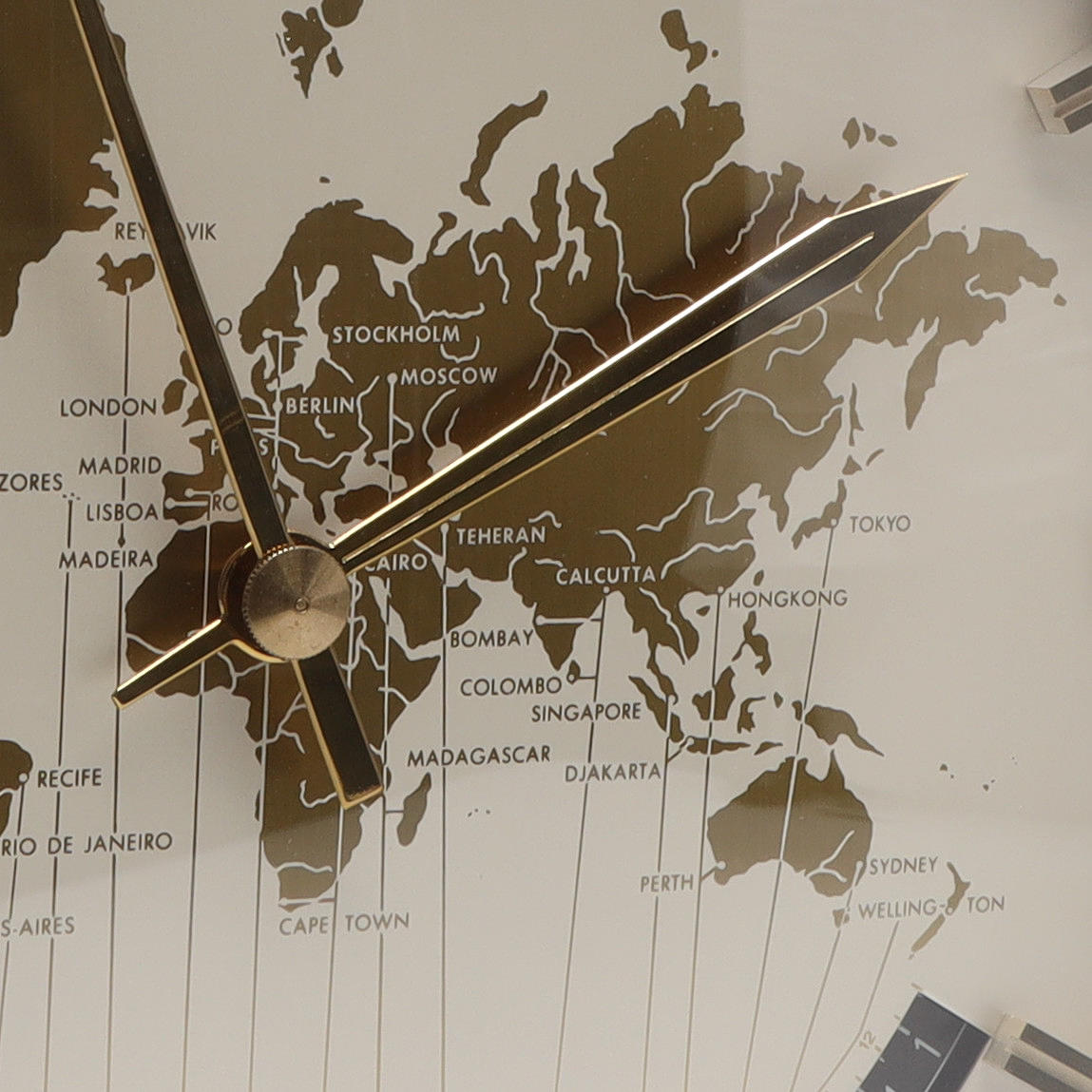 Zifferblatt mit Weltkarte und Weltzeit. Gehäuse aus Messing. H ca. 29 cm.