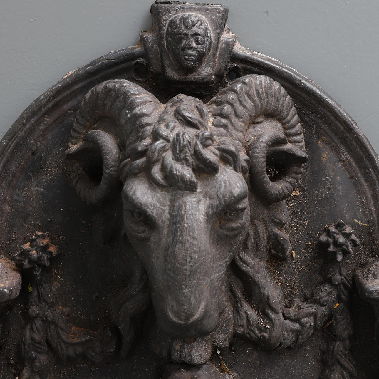 EIN BLEI WAND BRUNNEN, ÜBERSTEHEN MIT EINEM WIDDERKOPF.