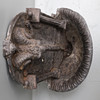 verzogen und verformt, stellenweise stark zerkratzt, bestoßen und markiert, verwittert, typische Gebrauchs- und Gebrauchsspuren, Funktion wird nicht garantiert.