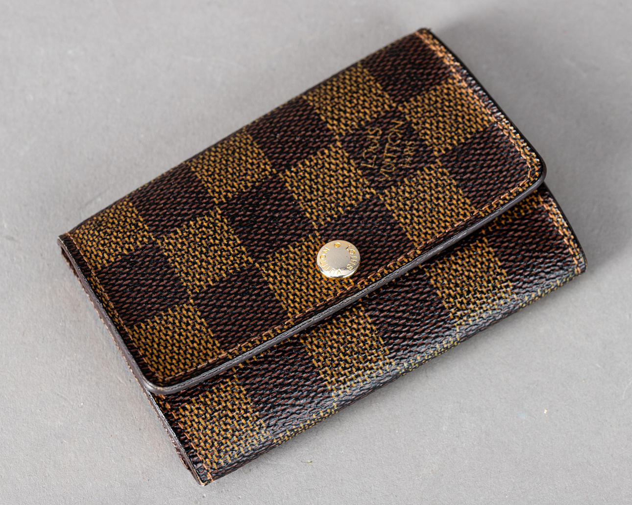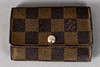 Damier Ebene Canvas. Firmenname auf dem Zipper und auf der Niete, innen Firmenname und gestempelt 'LOUIS VUITTON PARIS', made in France. Produkt ID:CT1067. ca. 10x7 cm.