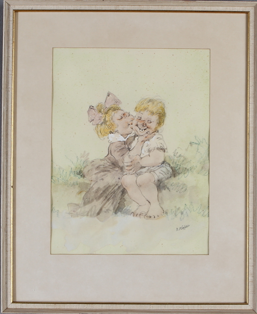 274849. ROBERT HÖGFELDT. Der Kuss, Aquarell, signiert.