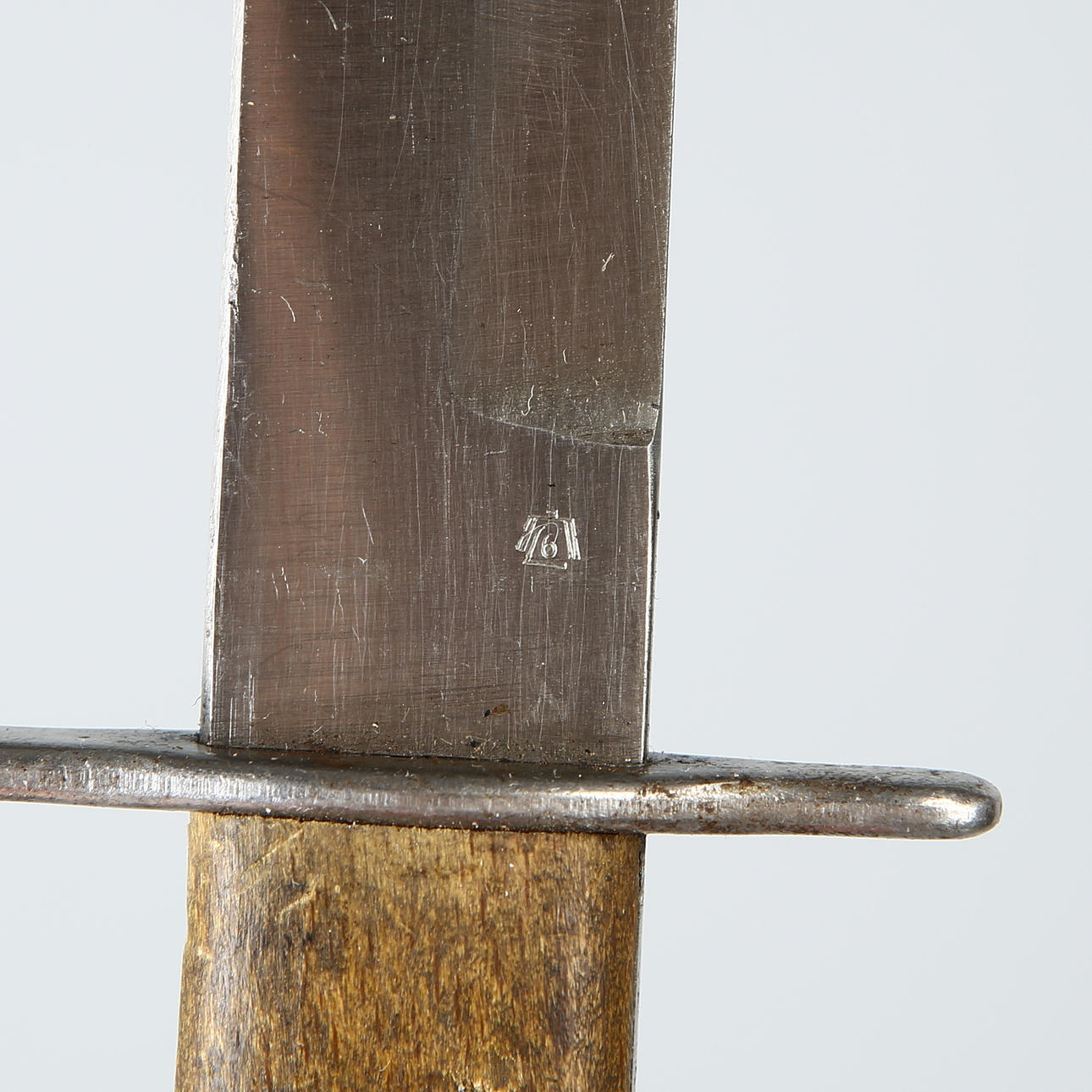 Mit Luftwaffenstempel, Griff mit Holzplättchen, Klinge mit Doppelschneide, Klingenlänge 17, Gesamtlänge 28 cm.