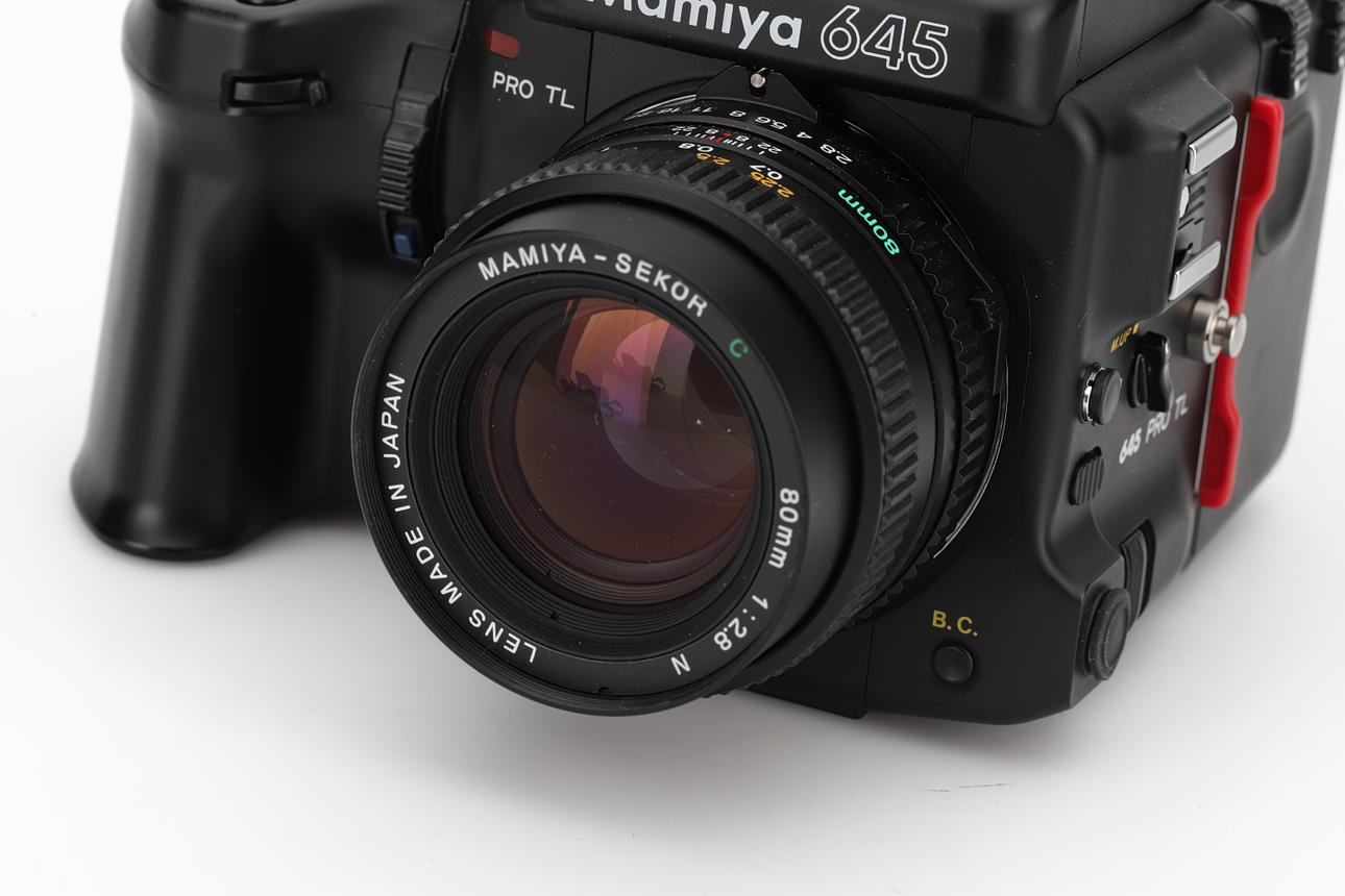Mamiya 645 pro TL Kameragehäuse mit Optik Mamiya Secor 80 mm 1:2,8 Seriennummer SG1245.