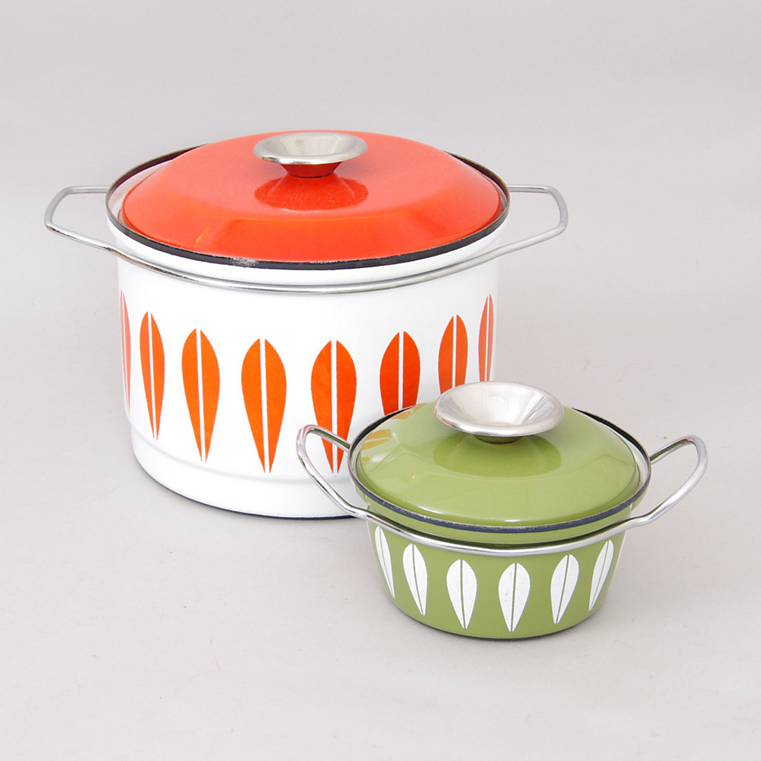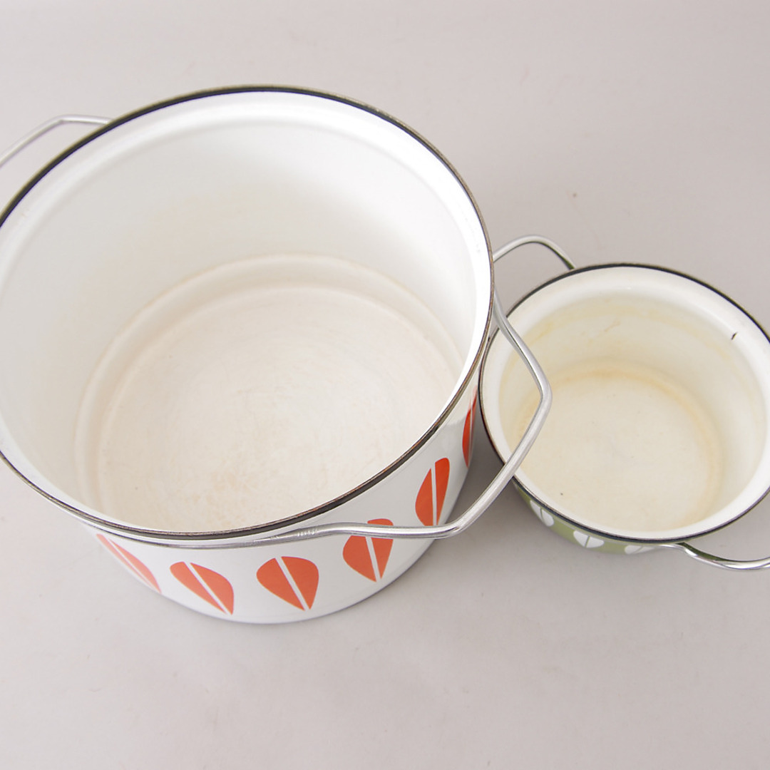 275456. TÖPFE, 2 Stück, emailliert, 1970er Jahre.