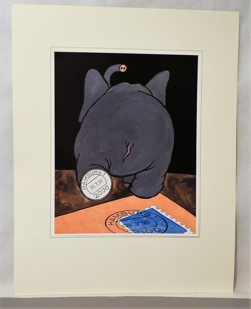 2758707. TOMI UNGERER. ELEFANT MIT POSTSTEMPEL, Kunstdruck, von 2000.