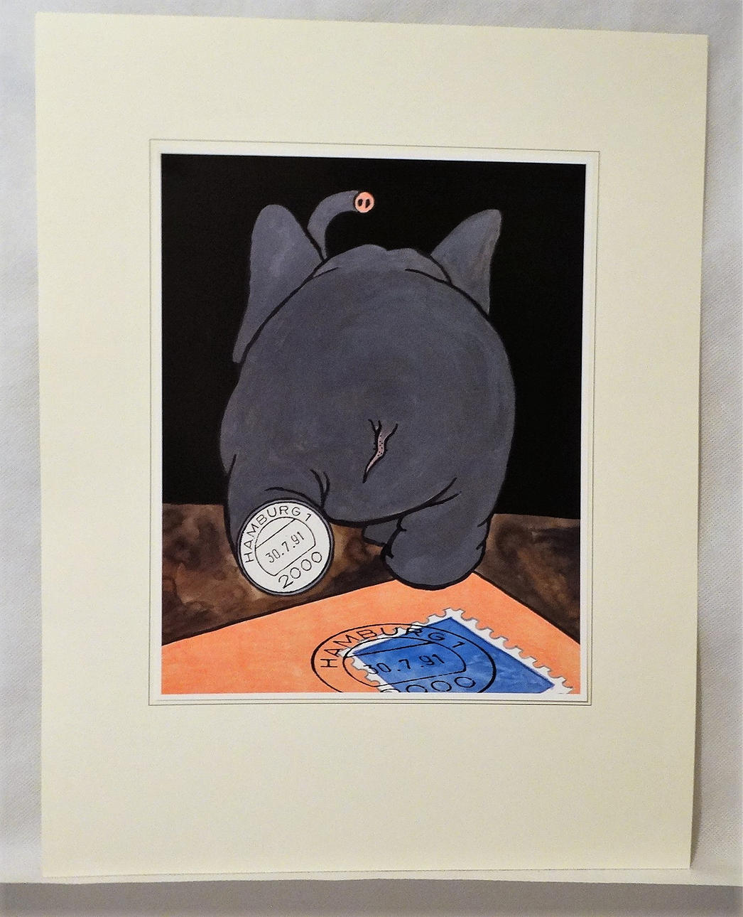 TOMI UNGERER. ELEFANT MIT POSTSTEMPEL, Kunstdruck, von 2000.
