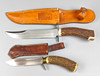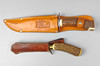 2 Jagdmesser mit Horngriff und Lederscheide.