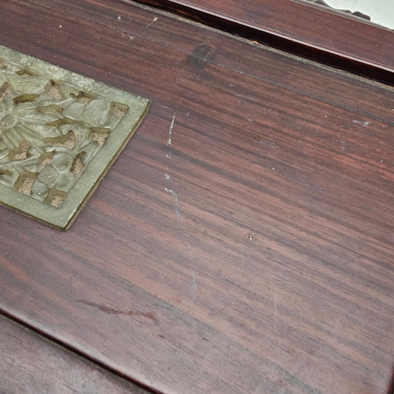 Gehäuse aus Palisanderholz, mit Jade-Inlay auf dem Schiebedeckel, innen Beinteile.